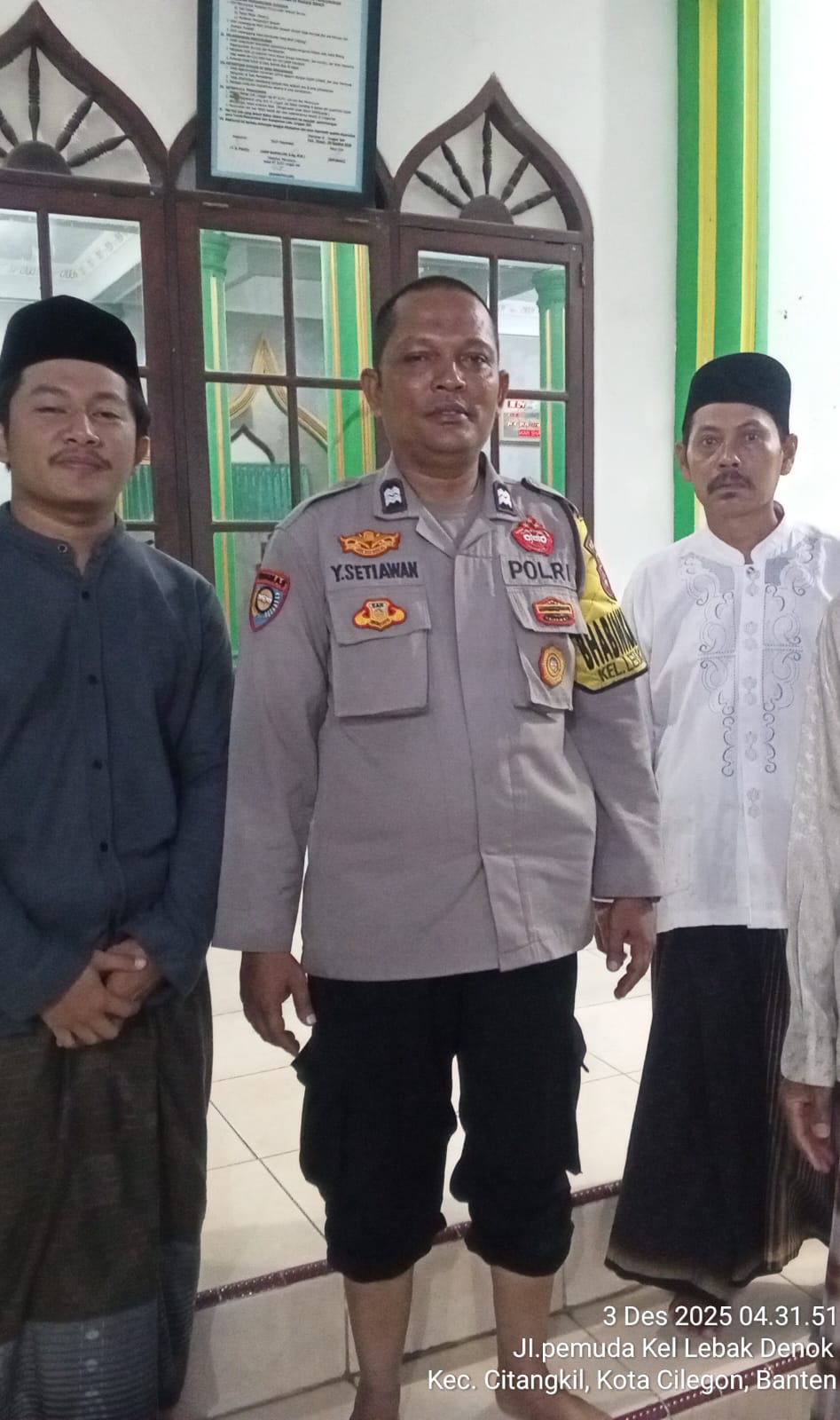 Cilegon – Bhabinkamtibmas Polsek Ciwandan Polres Cilegon Polda Banten menggelar kegiatan Pembinaan Rohani dengan Sholat subuh keliling di Masjid Yang ada Di Daerah hukum Polsek Ciwandan Polres Cilegon Polda Banten, Rabu (03/12/2025).