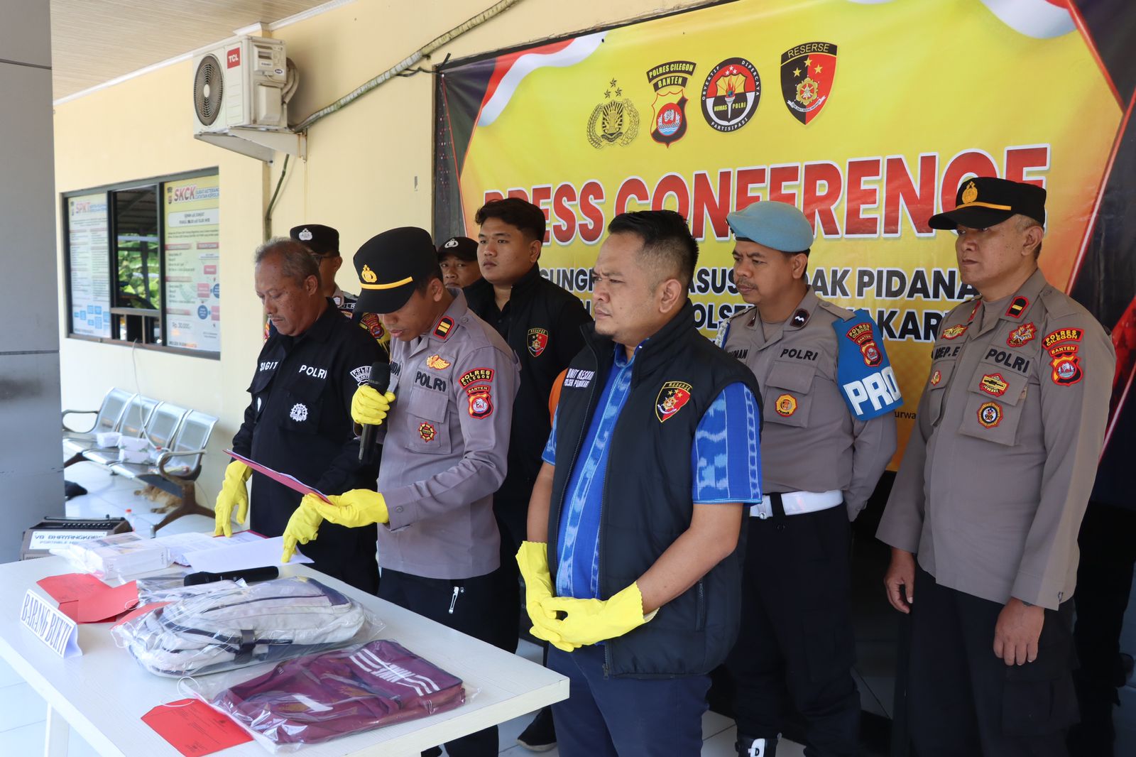 Kapolsek Purwakarta Polres Cilegon Polda Banten IPTU  Sukanda .S.M Pada saat press confrence pengungkapan kasus Pencurian HP yang terjadi di alun alun kota Cilegon dalam kegiatan senam bersama hari guru nasional pada hari Senin tanggal 24 November 2025  Pelapor sedang berada di alun-alun kota Cilegon dalam rangka mengikuti kegiatan hari guru,pada saat kegiatan senam bersama, Pelapor sedang membeli makanan di salah satu stand yang ada di lapangan alun-alun tersebut,  kemudian ada seseorang yang menyenggol tas ransel Pelapor yang sedang Pelapor pakai di bagian belakang badan Pelapor, lalu pada saat Pelapor duduk mau makan di sekitar stand tersebut, pelapor melihat tas ransel Pelapor dalam keadaan resleting terbuka. Ketika Pelapor mengecek isi dari tas ransel Pelapor, Pelapor tidak menemukan handphone yang sebelumnya Pelapor taruh di dalam tas ransel Pelapor tersebut/hilang, lalu Pelapor dan teman Pelapor Sdr Amirudin  mencari keberadaan HP Pelapor yang hilang tersebut, kemudian ada 1 (satu) orang yang Pelapor dan Sdr. Amirudin curigai karena tidak memakai kostum yang seragam dengan peserta yang lainnya, Ketika Pelapor mencurigai  1 (satu) orang tersebut, orang tersebut jalan cepat dan berlari menuju kebelakang kolam air mancur, lalu Sdr. Amirudin melaporkan kepada salah satu anggota polisi yang sedang melakukan pengamanan di sekitar alun-alun tersebut bahwa ada yang dicurigai menjadi pelaku pencurian tersebut. Kemudian ada beberapa anggota polisi yang ikut melakukan pengejaran terhadap terduga pelaku tersebut dan akhirnya terduga pelaku tersebut berhasil diamankan dan di bawa ke pos security, setelah sampai di pos security tas terduga pelaku di buka ternyata benar ada HP Pelapor yang dicuri oleh orang tersebut. Dengan kejadian tersebut pelapor mengalami kerugian sebesar RP 2.600.000 (dua juta enam ratus ribu rupian) dan selanjutnya melaporkan ke Polsek Purwakarta Polres Cilegon Polda Banten