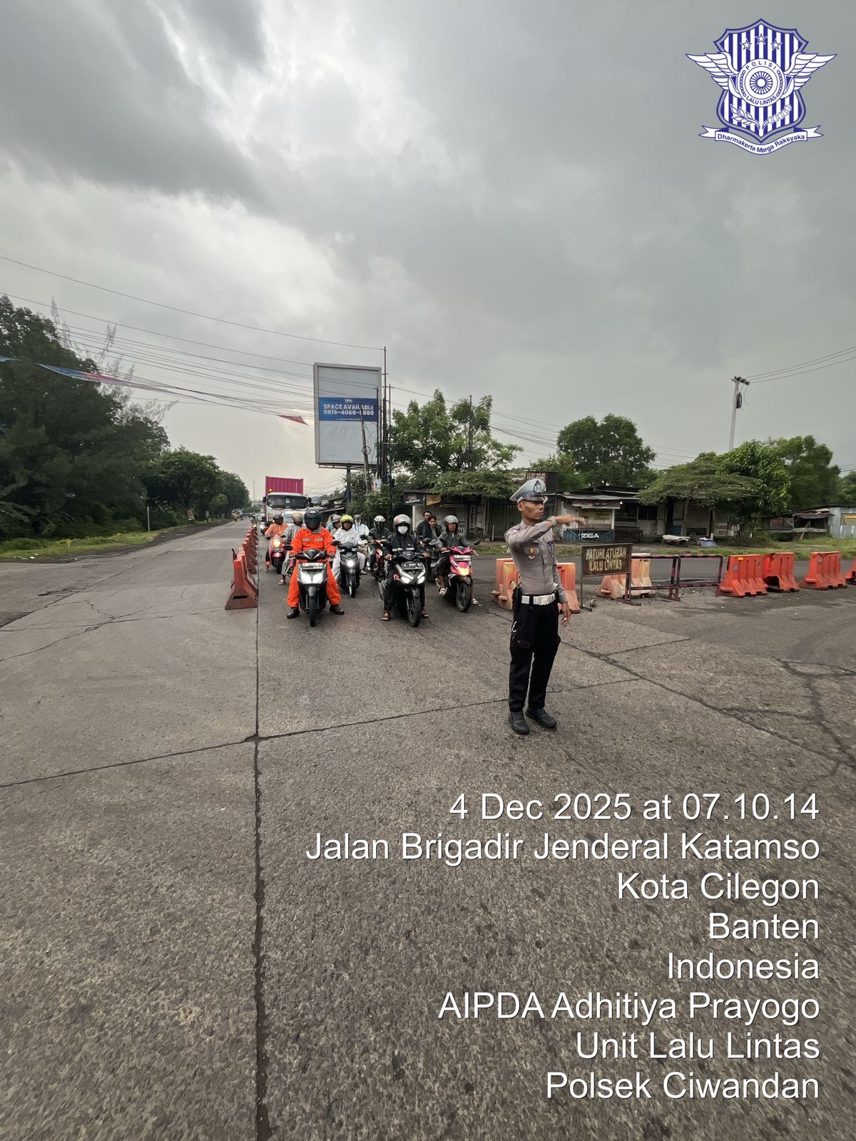 Cilegon - Dalam Mewujudkan Aksi Nyata Pelayanan Kepada Masyarakat,Personil Polsek Ciwandan Polres Cilegon Polda Banten Laksanakan Strong Poin Pengaturan Lalu-lintas, Kamis (04/12/2025).