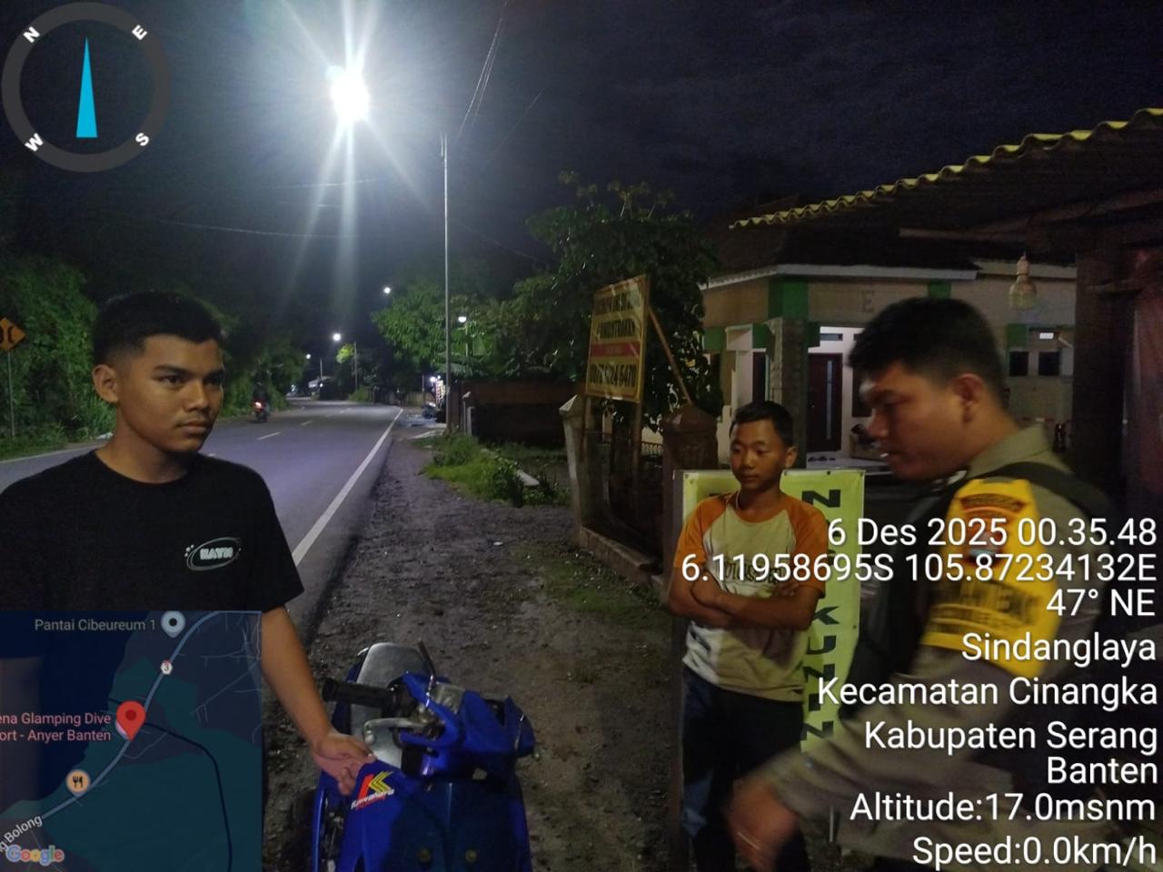 *Polres Cilegon* – Dalam Rangka Pencegahan Kejahatan Jalanan dan Memelihara situasi keamanan dan menjaga serta memberikan rasa aman dan nyaman di masyarakat,Salah satu upaya untuk mewujudkan hal tersebut sebagaimana yang dilakukan oleh Personil Polsek Cinangka Polres Cilegon Polda Banten melaksanakan giat patroli blue light malam hari hingga menjelang pagi, Sabtu (06/12/2025).
