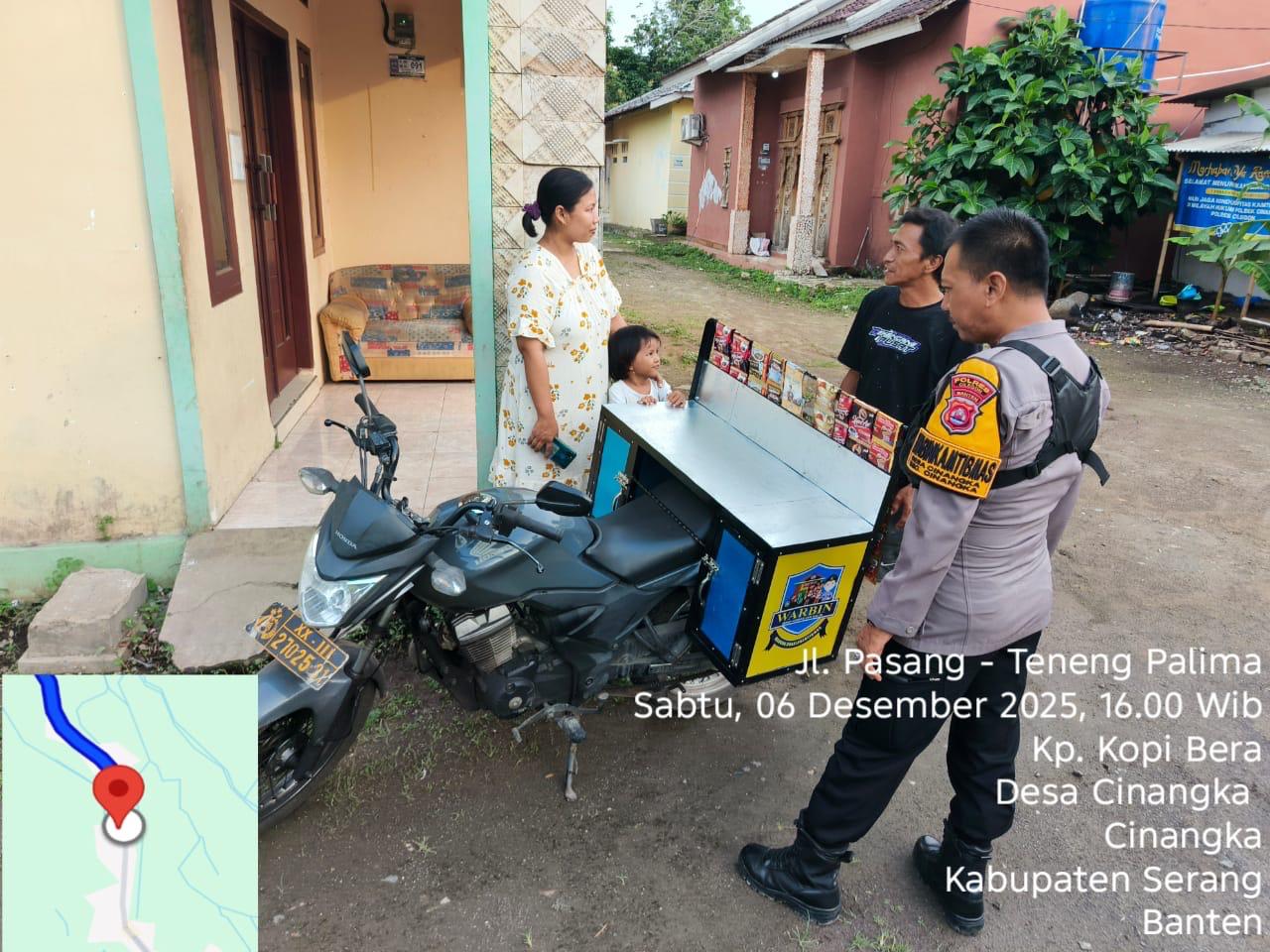 Polres Cilegon ~ Bhabinkamtibmas Polsek Cinangka Polres Cilegon Polda Banten Sambang dan silaturahmi dengan masyarakat merupakan salah satu tugas seorang bhabinkamtibmas untuk mengetahui situasi Kamtibmas Desa binaan dalam menjalin silaturahmi dengan Warga Ds Cinangka di Warung Bhabinkamtibmas, Sabtu (06/12/2025).