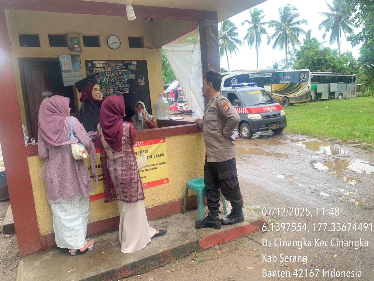_*POLRES CILEGON*_ | Polsek Cinangka Polres Cilegon Polda Banten melaksanakan kegiatan patroli Serta memberikan Himbauan kepada pengunjung pantai yang berwisata dan Sambang kepada petugas penjaga pantai dan juga antisipasi harkamtibmas di Wilayah Hukum Polsek Cinangka Polres Cilegon Polda Banten, Minggu (07/12/2025).