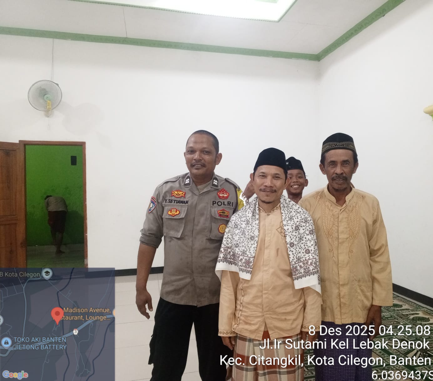 Cilegon – Bhabinkamtibmas Polsek Ciwandan Polres Cilegon Polda Banten menggelar kegiatan Pembinaan Rohani dengan Sholat subuh keliling di Masjid Yang ada Di Daerah hukum Polsek Ciwandan Polres Cilegon Polda Banten,Minggu (07/12/2025).
