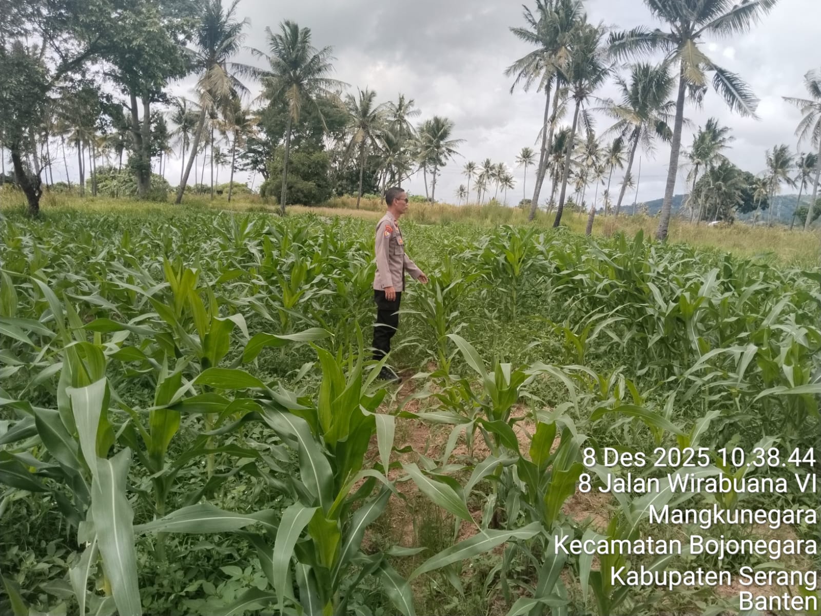 Cilegon - Melaksanakan program pemerintah, penanaman jagung dalam program ketahanan pangan, personil Polsek Kp Merak Polres Cilegon Polda Banten melaksanakan kegiatan peninjauan serta monitoring lokasi yang nantinya akan ditanami bibit jagung unggul di Desa Mangkunegara Kecamatan Bojonegara, Kabupaten Serang, Senin (08/12/2025).
