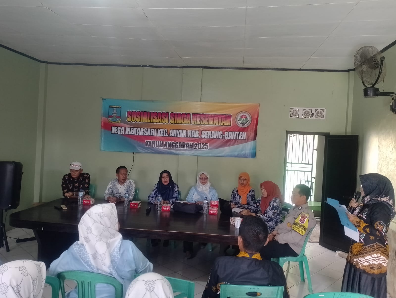 Desa Mekarsari melaksanakan kegiatan Sosialisasi Desa Siaga Kesehatan Hadir dalam kegiatan tersebut Kades, Kepala Puskesmas Anyar, Bhabinkamtibmas dan beserta Ibu PKK Desa dan tamu undangan, serta narasumber penyuluhan kesehatan dari kepala Puskesmas UPT Anyar.