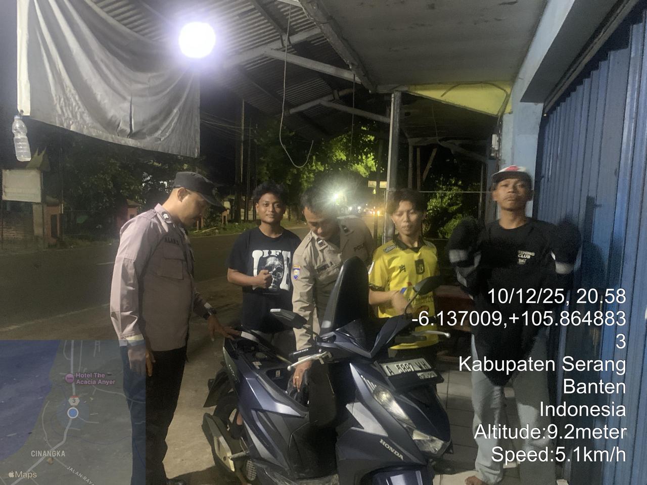*Polres Cilegon* – Dalam Rangka Pencegahan Kejahatan Jalanan dan Memelihara situasi keamanan dan menjaga serta memberikan rasa aman dan nyaman di masyarakat,Salah satu upaya untuk mewujudkan hal tersebut sebagaimana yang dilakukan oleh Personil Polsek Cinangka Polres Cilegon Polda Banten melaksanakan giat patroli blue light malam hari hingga menjelang pagi, Kamis (11/12/2025).