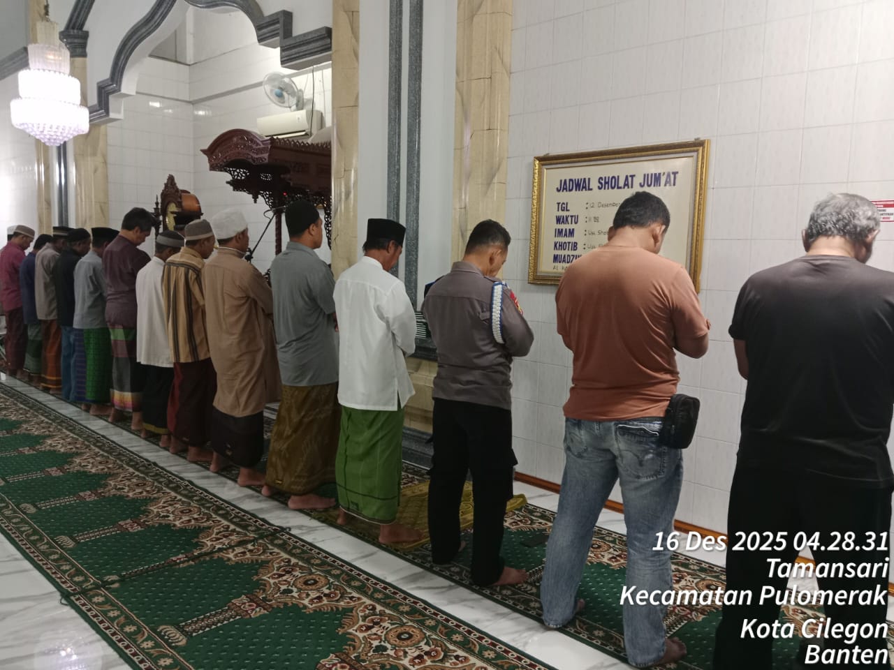 Cilegon – Personil Kskp Merak Polres Cilegon Polda Banten menggelar kegiatan Pembinaan Rohani dengan shalat subuh keliling di Masjid Yang ada Di Daerah hukum Polsek Kp Merak Polres Cilegon Polda Banten, Selasa (16/12/2025).