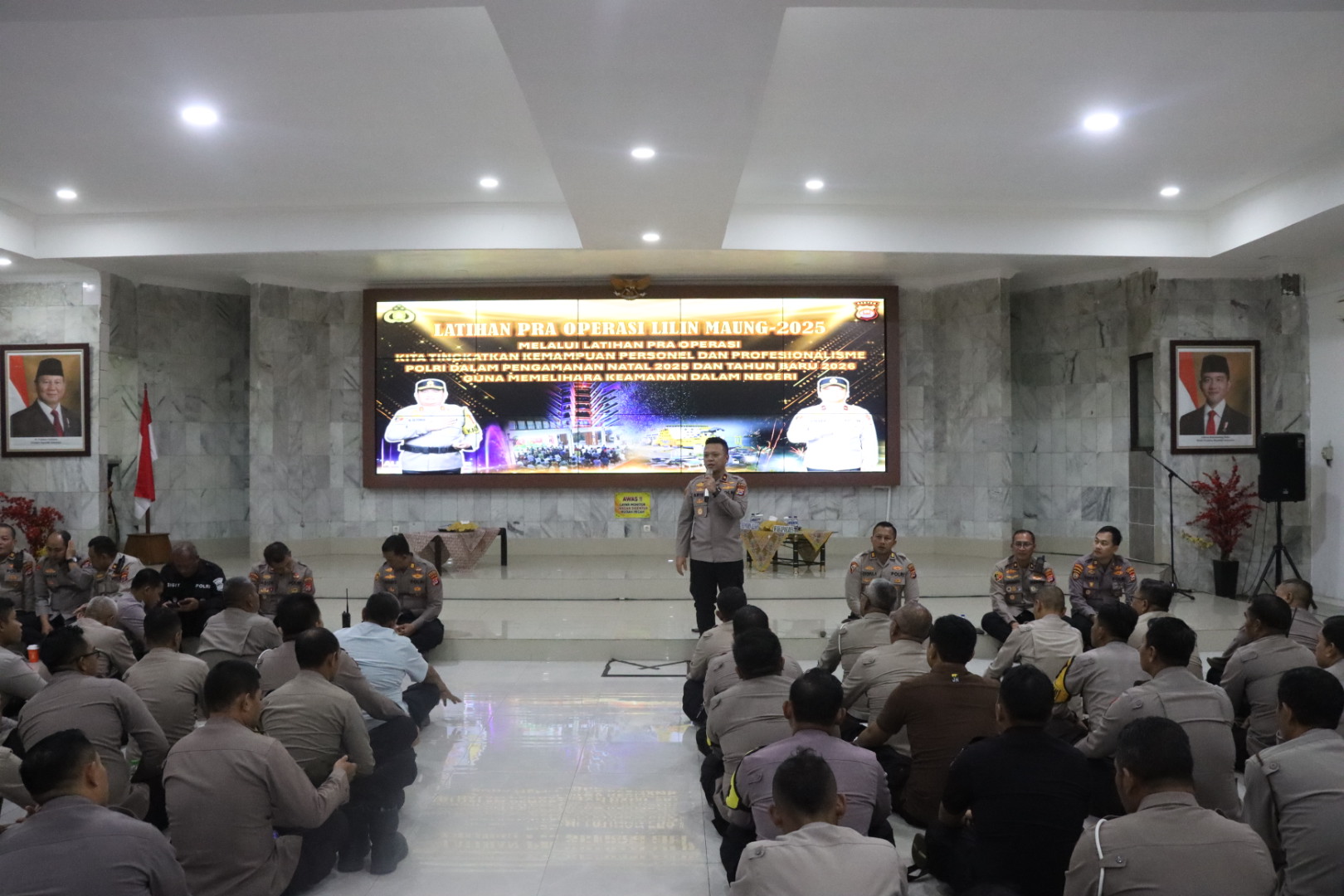Cilegon – Polres Cilegon Polda Banten menggelar Latihan Pra Operasi (Lat Pra Ops) Lilin Maung Tahun 2025 sebagai bentuk kesiapan pengamanan perayaan Natal 2025 dan Tahun Baru 2026. Kegiatan berlangsung bertempat di Aula Wicaksana Laghawa Polres Cilegon. Rabu, 17/12/2025