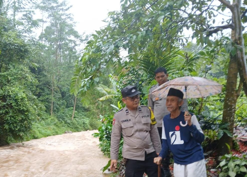 Siaga Kebencanaan, Personel Polres Cilegon Patroli Pantau Debit Air Wilayah Anyar Pasca Hujan