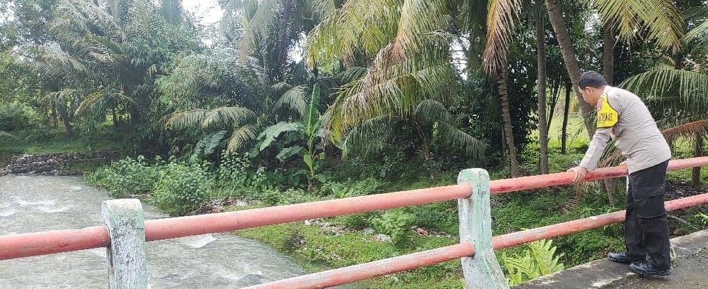 Pasca Hujan Polsek Anyar Pantau Debit Air Wilayah Dengan Patroli