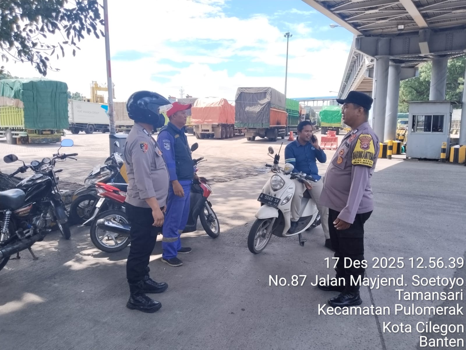 Cilegon - Personel Polsek Kskp Merak Polres Cilegon Polda Banten melaksanakan sambang dan patroli kawasan pelabuhan merak dalam rangka menjaga Harkamtibmas di Kawasan Pelabuhan Merak, Kamis (18/12/2025).