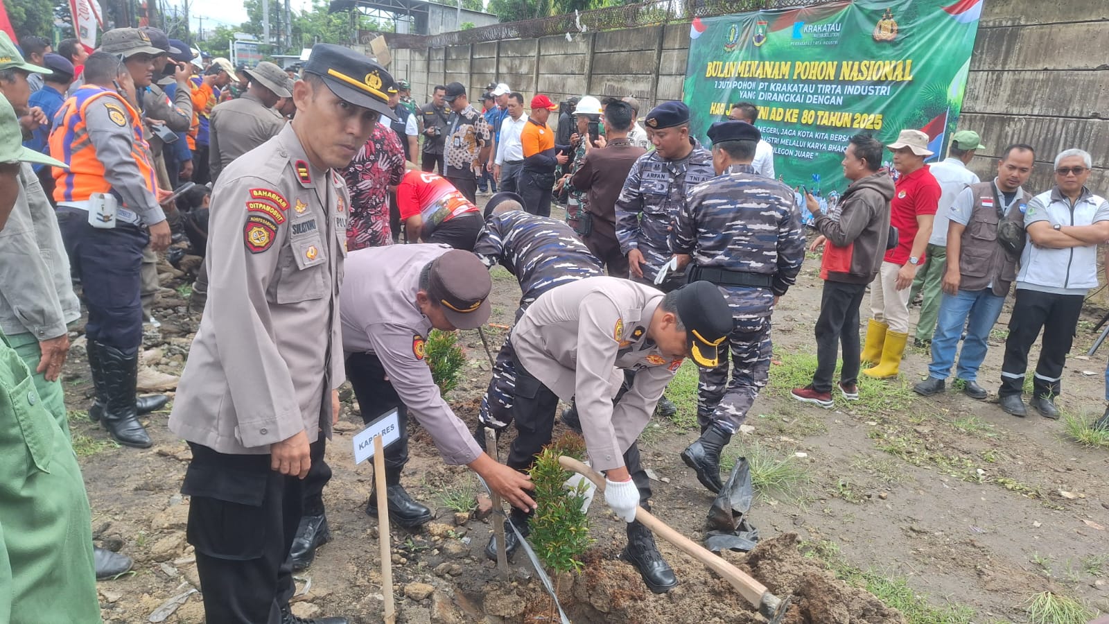 Cilegon - Dalam rangka memperingati Hari Juang TNI AD ke-80 Tahun 2025, Kodim 0623 Cilegon melaksanakan kegiatan Karya Bakti Penanaman Pohon di lahan milik PT. KTI samping PT. SUJ Jl. Raya Anyer Kel. Tegalratu Kec. Ciwandan Kota Cilegon, Kamis (18/12/2025).