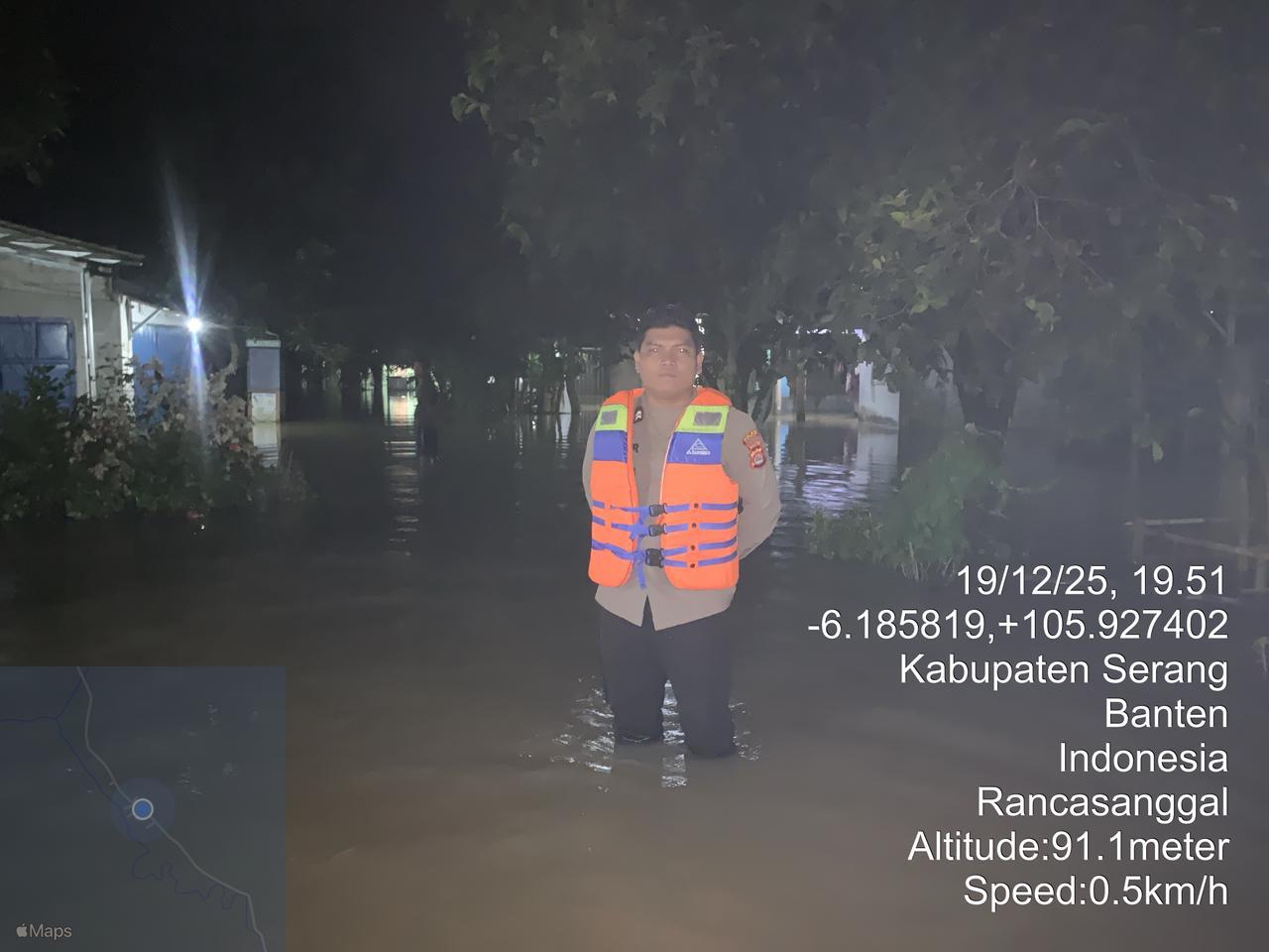 *-POLRES CILEGON-* Polda Banten, Pastikan situasi di Lingkungan Paskah Aman Hujan Deras Bhabinkamtibmas Aipda Tengku Bersama Bpbd Meninjau Warga Yang terdampak banjir akibat hujan deras di Kp Kajeroan Desa. Rancasanggal Kecamatan Cinangka Kab. Serang. Sabtu (20/12/2025).