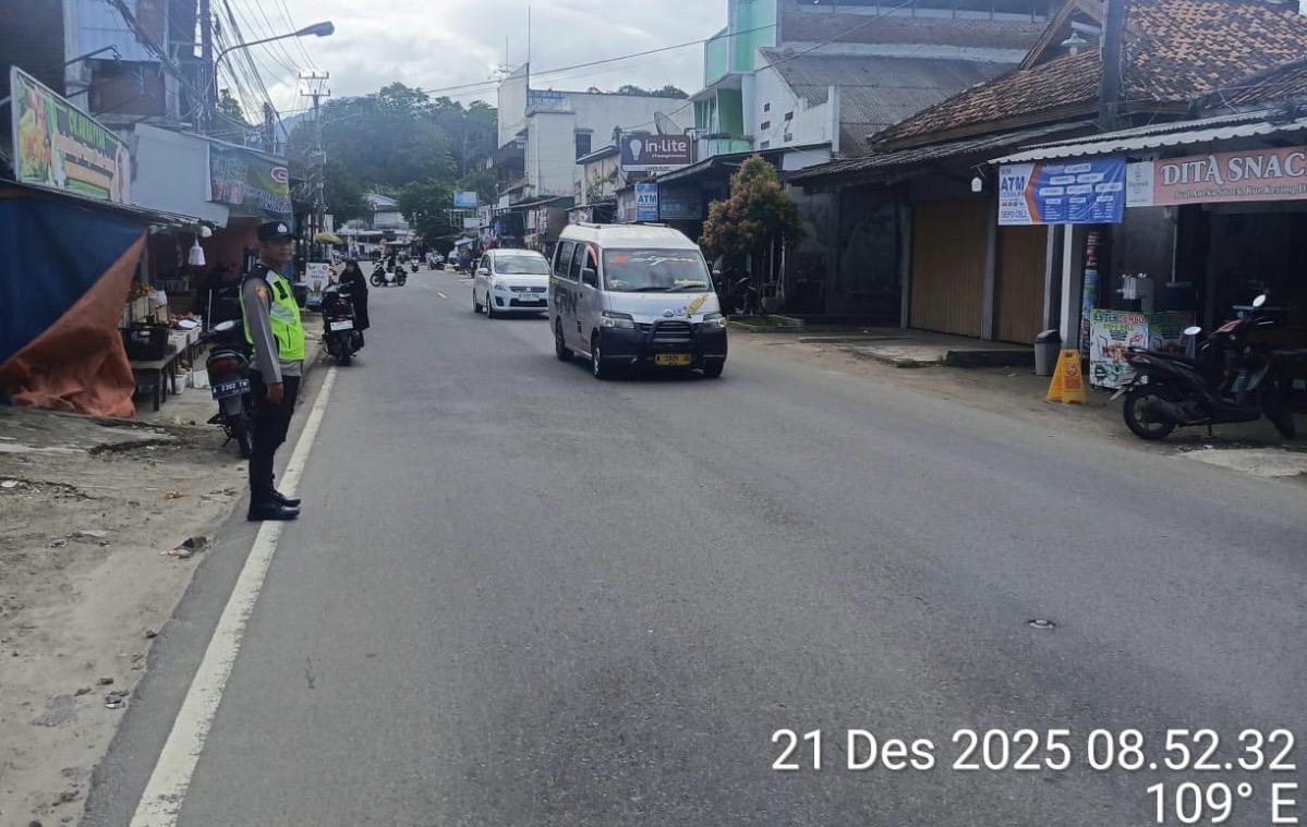 _*Polres Cilegon*_ | Laksanakan peningkatan pelayanan Prima, Polsek Cinangka Polres Cilegon Polda Banten melaksanakan pengaturan arus lalu lintas, Minggu (21/12/2025)