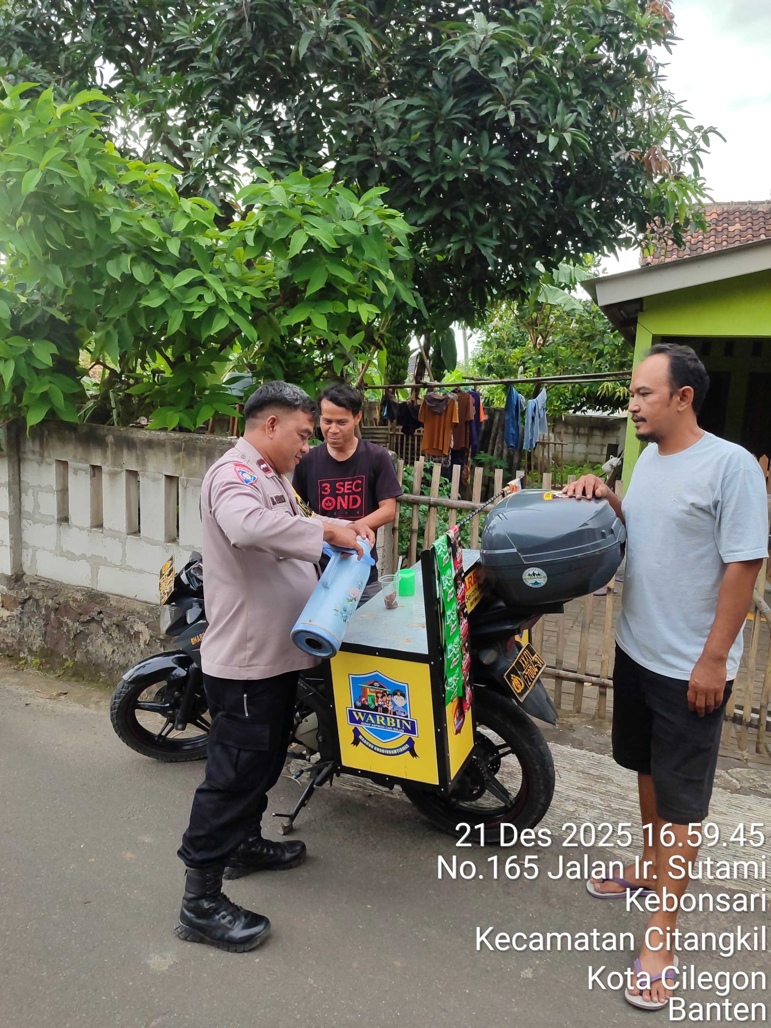 Cilegon - Bhabinkamtibmas Polsek Ciwandan Polres Cilegon Polda Banten melaksanakan kegiatan WARBIN (warung Blnhabinkamtibmas) di Lingkungan Binaan, Minggu (21/12/2025).