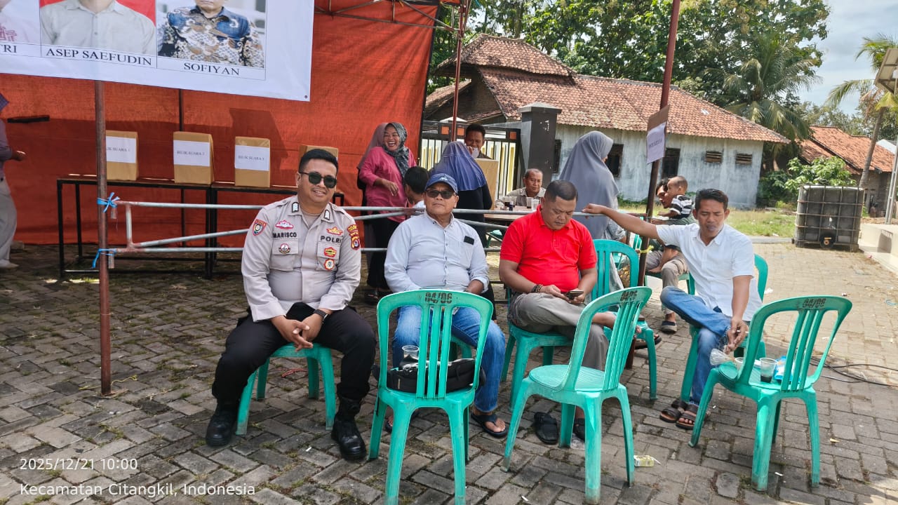 Cilegon -  Bhabinkamtibmas Kelurahan Tamanbaru Polsek Ciwandan Polres Cilegon Polda Banten AIPDA Ediyanto menghadiri pemilihan Ketua RW 003 Lingkungan Kubang Lesung kelurahan Tamanbaru Kecamatan Citangkil Kota Cilegon, Minggu (21/12/2025).