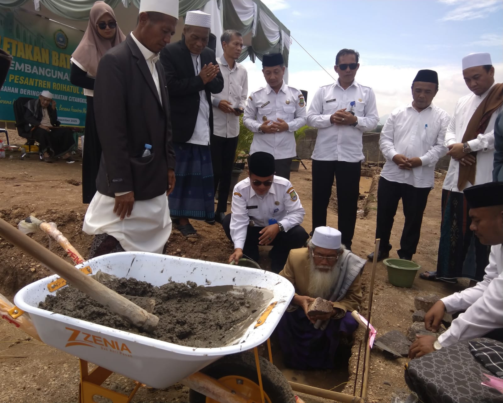 Cilegon - Wakapolsek Ciwandan AKP Uup M Ma'ruf dan personil Polsek Ciwandan hadiri peletakan batu pertama pembangunan Ponpes Roihatul Jannah Banten di Link. Warnasari 2, Kel. Dringo, Citangkil. Kegiatan dihadiri Pemerintah Daerah, TNI Polri, Tokoh Agama, dan Masyarakat,Rabu (24/12/2025).