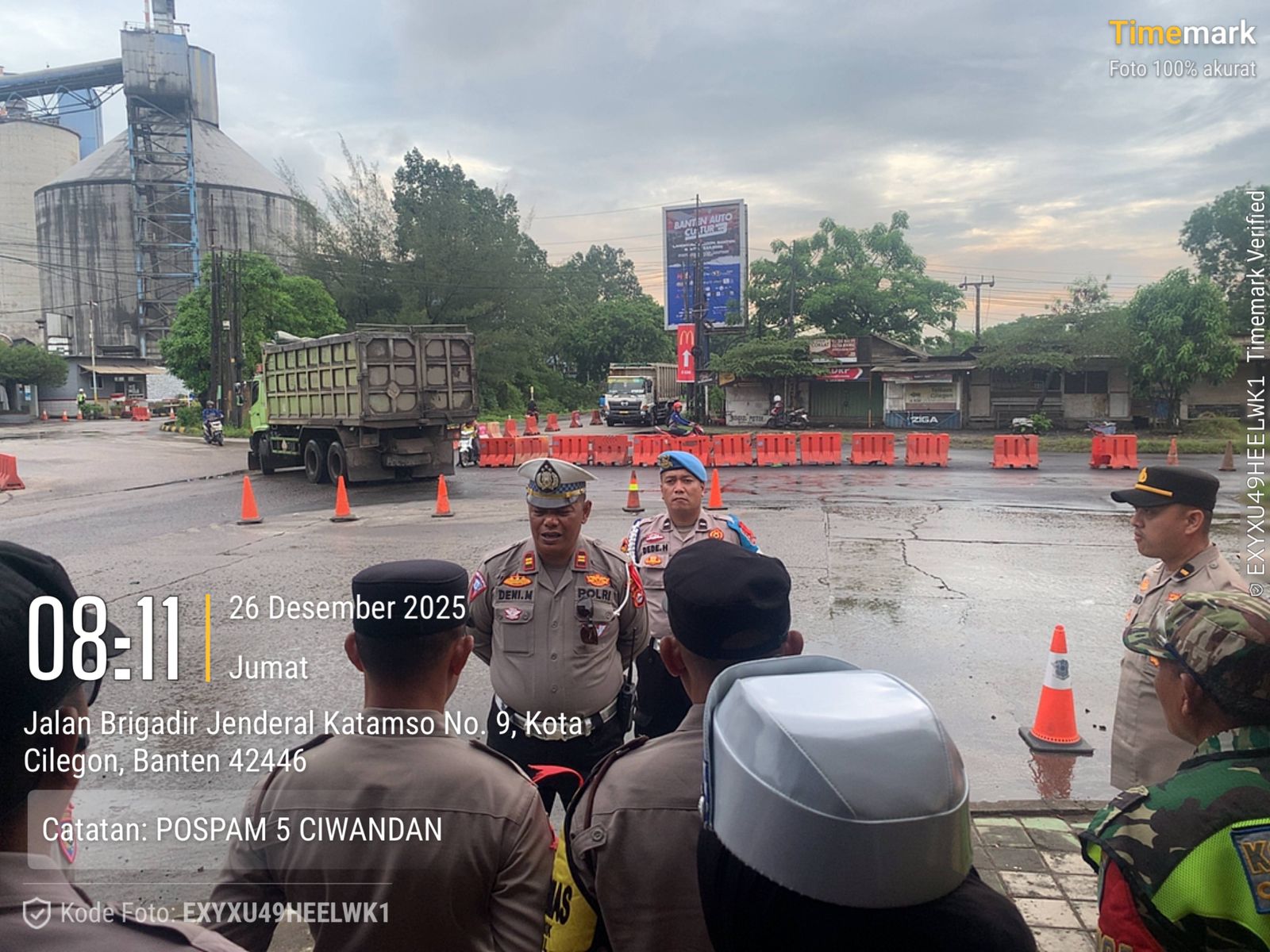 Cilegon - Personil Pospam 5 Ciwandan Polsek Ciwandan Polres Cilegon Polda Banten melaksanakan Apel Kesiapan Pelaksanaan kegiatan pengamanan Arus Lalu-lintas Wisata Dalan Operasi Lilin Maung 2025, Jum'at (26/12/2025).