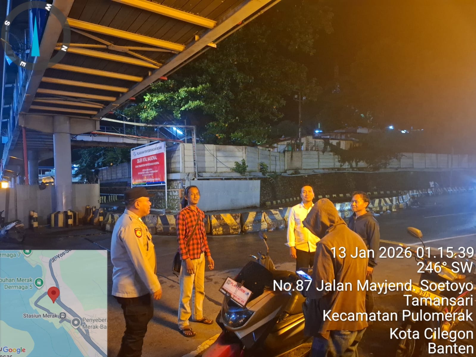 Cilegon - Personil Polsek Kskp Merak Polres Cilegon melaksanakan patroli di kawasan pelabuhan merak memberikan rasa aman dan damai, Selasa (13/01/2026)