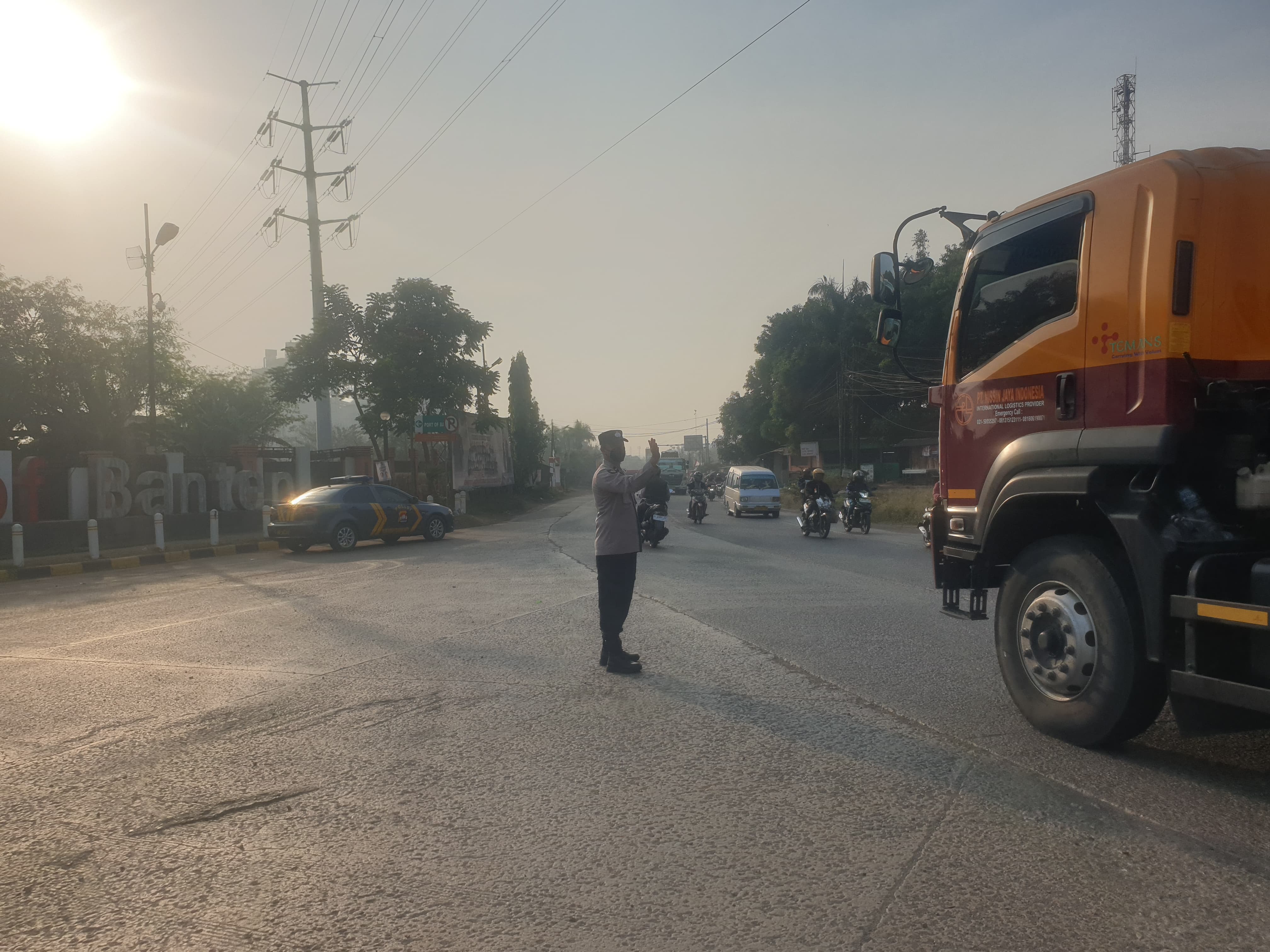 Pengaturan Lalu Lintas Personil Polsek Kskp Banten Polres Cilegon berjalan aman