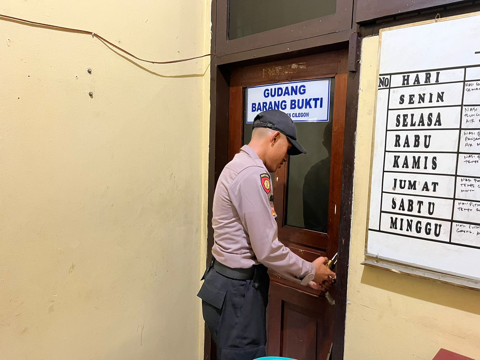 Anggota Piket Tahti Polres Cilegon, Harus Melakukan Kegiatan Rutin Pengecekan Kelengkapan dan Barang Bukti Di Gudang Barang Bukti.