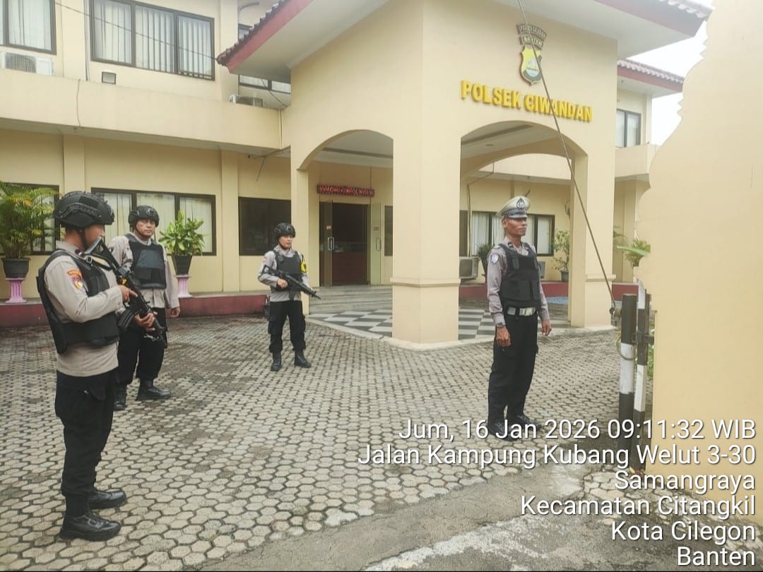 Cilegon - Guna mengantisipasi adanya potensi ancaman dan gangguan terhadap keamanan kantor maupun keselamatan personel piket jaga, Personil Polsek Ciwandan Polres Cilegon Polda Banten selalu tingkatkan kesiapsiagaan dan kewaspadaan dengan rutin menggelar kegiatan Sistem Pengamanan Mako (Sispam Mako), Jum'at (16/01/2026).