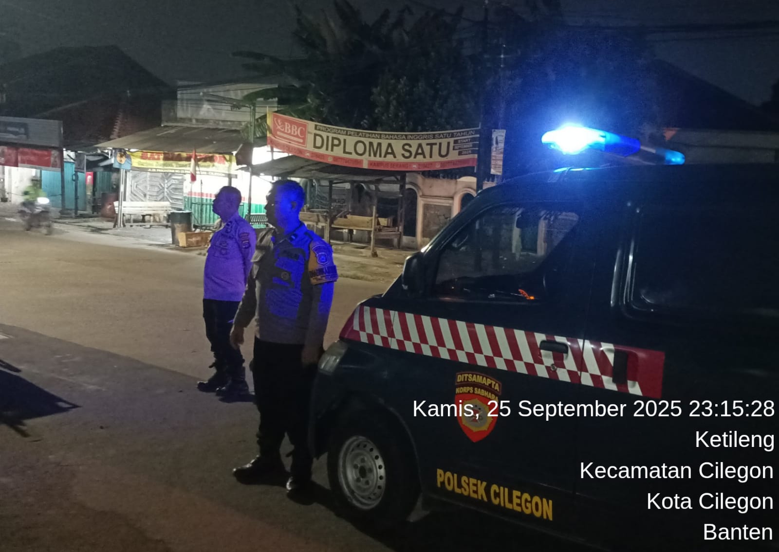 *-POLRES CILEGON-* Polda Banten. Dalam Rangka Ciptakan situasi kamtibmas yang kondusif Polsek Cilegon Lakukan Blue Light Antisipasi GKTM dan 3C (Curas,Curat dan Curanmor) Anggota Piket Melaksanakan Patroli Blue Light dini hari Pastikan Masyarakat Nyaman Menikmati Lewati Jalan Kembar dan Dalam Rangkakreasi Rasa aman Masyarakat Melintas jalur Protokol, Personil Polsek Cilegon Polres Cilegon Lakukam Langkah tindakan Preventif kepada Muda Mudi yang sedang Nongkrong sampai dini hari serta malksnakan tindakan Antisipasi Kamtibmas Kriminalitas dan Balap Liar di Wilayah Polsek Cilegon Kecamatan Cilegon Kota Cilegon serta sebagai _*Sistem Pendingin*_ Kamtibmas di wilayah binaan agar Aman, Kondusif dan terkendali. Senin (19/1/2025).
