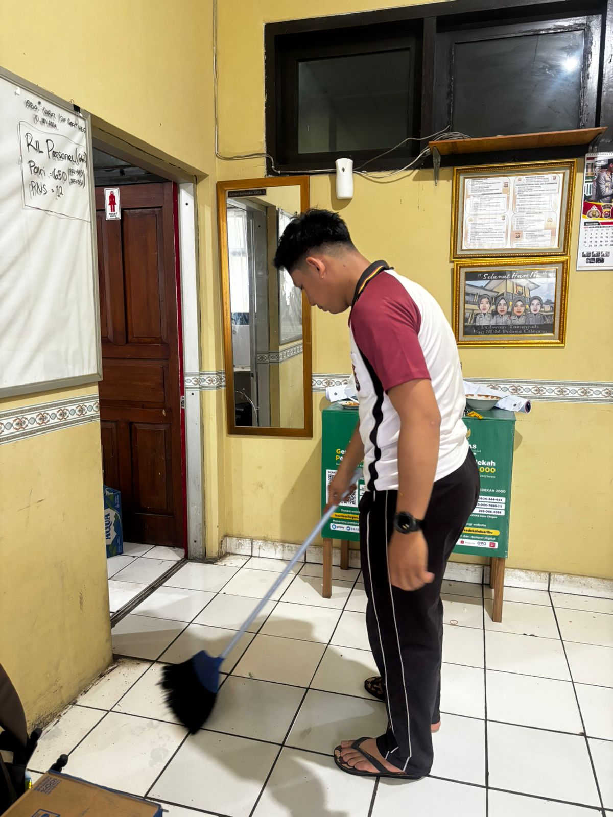 Bag SDM Polres Cilegon Polda Banten melaksanakan bersih-bersih ruangan dalam rangka mendukung Program Prioritas kapolda Banten Irjen Pol Hengki, Rabu (28/1/2026)