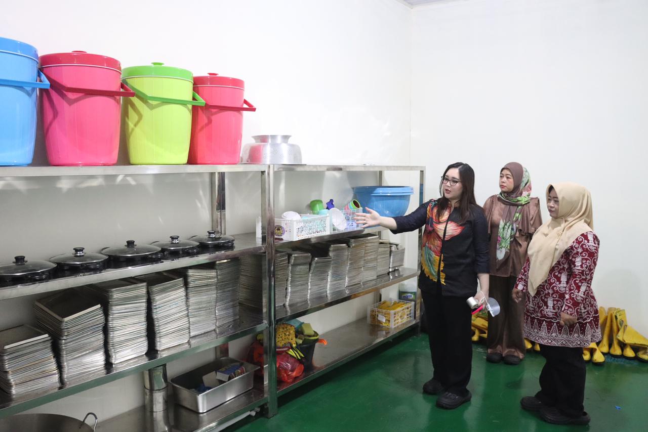 Dalam kunjungannya, Ny. Ulfa Hengki melakukan pengecekan menyeluruh ke sejumlah fasilitas dapur SPPG, mulai dari ruang loker, ruang penyimpanan basah dan kering, ruang persiapan, ruang dapur, ruang pendingin makanan, ruang pemorsian, ruang cuci, ruang alat, hingga ruang kepala SPPG, ruang akunting ahli gizi, dan ruang meeting. Peninjauan ini dilakukan untuk memastikan seluruh ruangan terjaga kebersihannya, aman, serta mendukung kualitas pelayanan yang optimal.