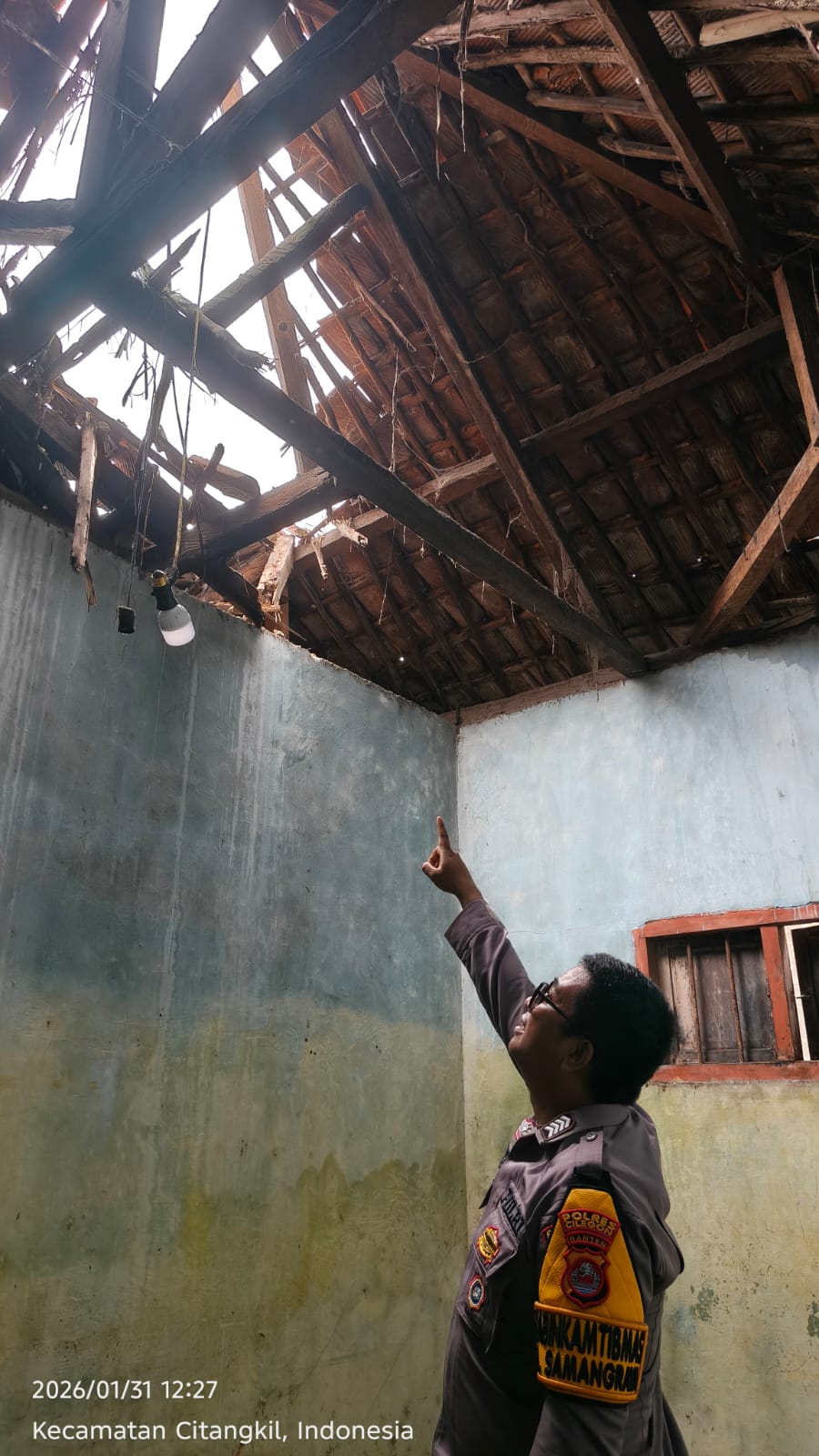 Alami Rumah Roboh, Bhabinkamtibmas Polsek Ciwandan Cek Ke TKP