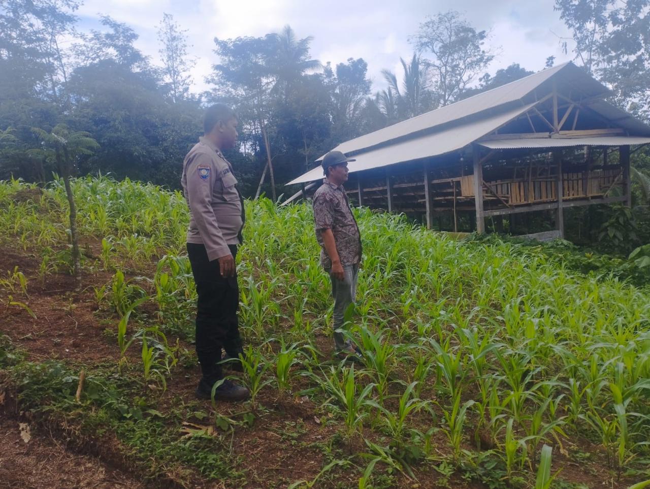 Dalam kesempatan tersebut bahwa Bhabinkamtibmas Polsek Cinangka bersama Kelompok Tani Kec. Cinangka Kab Serang Monitoring dan Pedampingan kegiatan Poktan di wilayahnya lahan yang sedang ditanami Tanaman Jagung dan Palawija.