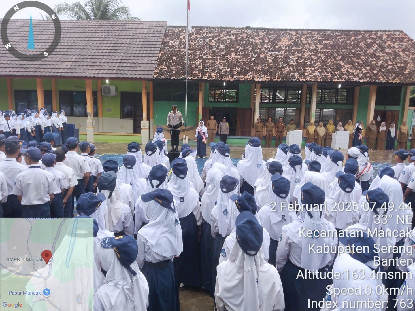 Mancak - Sebagai Pengemban Fungsi Harkamtibmas, Bhabinkamtibmas melaksanakan Kegiatan Pembina Upacara dan Silatuhrami SMPN 1 Mancak dalam rangka Program Quick Wins Presisi Kapolri dan Program Commander Wish Kapolres Cilegon "TRENDING"*. MINGGU, (02/02/2026).