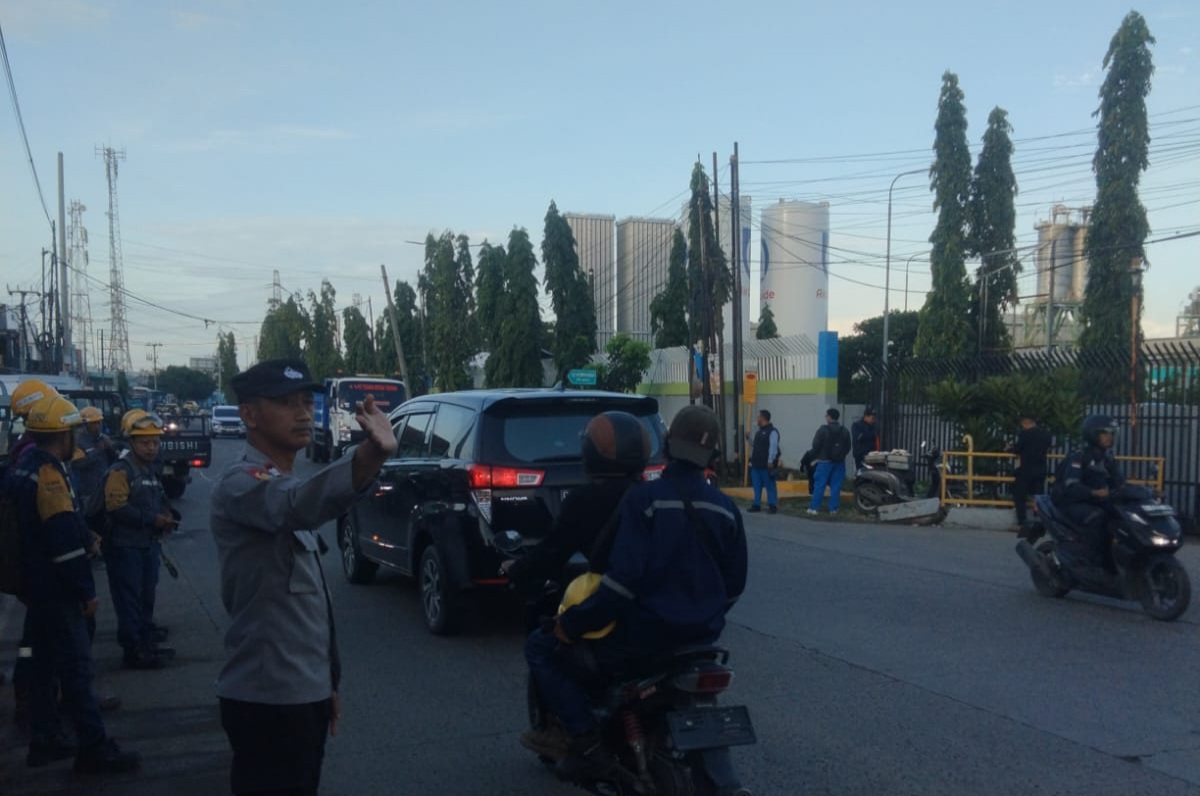 Cilegon - Dalam Mewujudkan Aksi Nyata Pelayanan Kepada Masyarakat,Personil Polsek Ciwandan Polres Cilegon Polda Banten Laksanakan Strong Poin Pengaturan Lalu-lintas Pagi,Selasa  (03/02/2026).