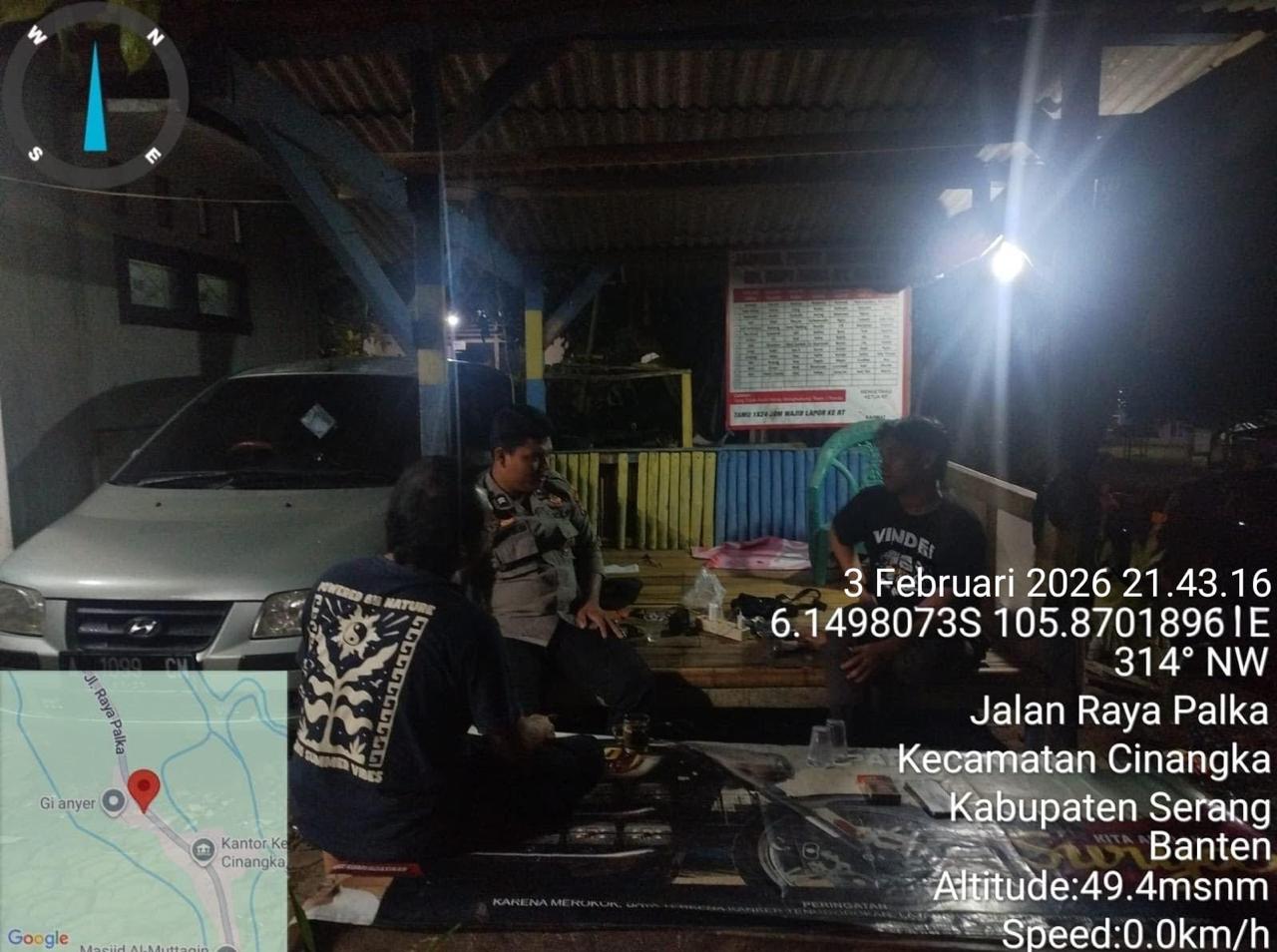 *Polres Cilegon* || Personil Bhabinkamtibmas Polsek Cinangka melaksanakan Program Komandan Wish Kapolda Banten RONDA SATKAMLING menyampaikan komunikasi dengan Petugas Siskamling agar berperan aktif dalam menciptakan Harkamtibmas yang aman dan Kondusif, Rabu (04/02/2026).