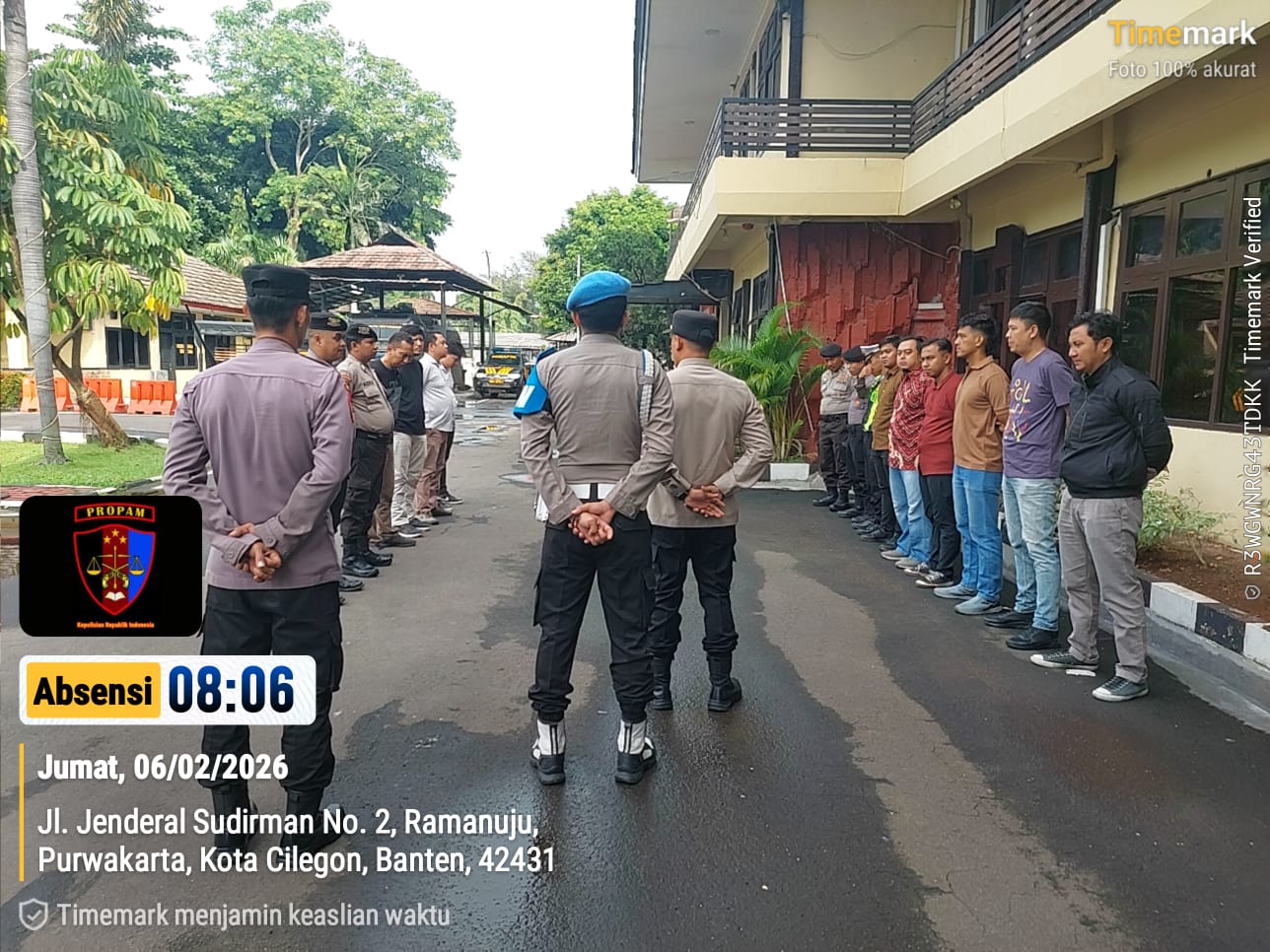 Cilegon, personel Satreskrim Polres Cilegon Polda Banten melaksanakan piket di penjagaan pintu masuk Polres Cilegon Polda Banten untuk memastikan mako Polres Cilegon dalam keadaan aman dan nyaman dalam melayani Masyarakat tanpa adanya gangguan kejahatan. Jumat (06/02/2026).