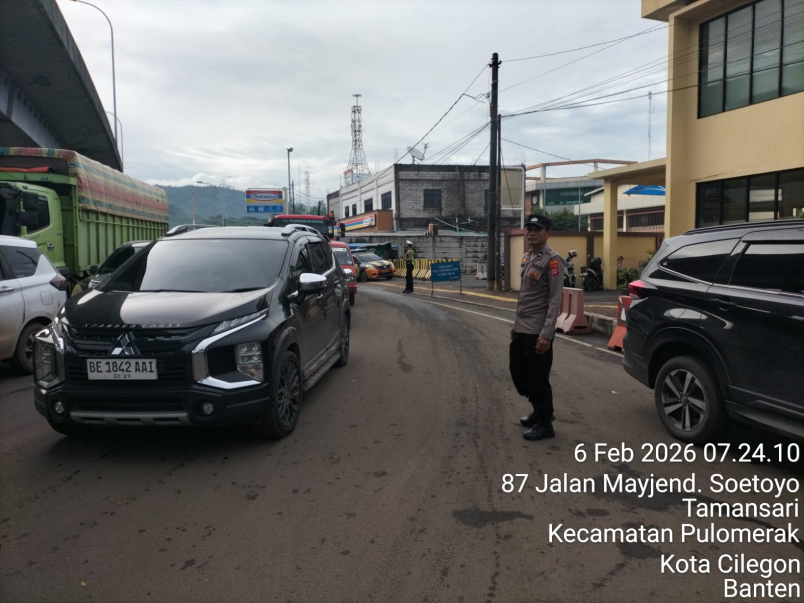 Cilegon - Dalam rangka peningkatan pelayanan prima kepada masyarakat, Kskp Merak Polres Cilegon Polda Banten melaksanakan pengaturan antrian R4 yang akan masuk ke Kapal Ferry di Pelabuhan Merak, Jumat (06/02/2026).