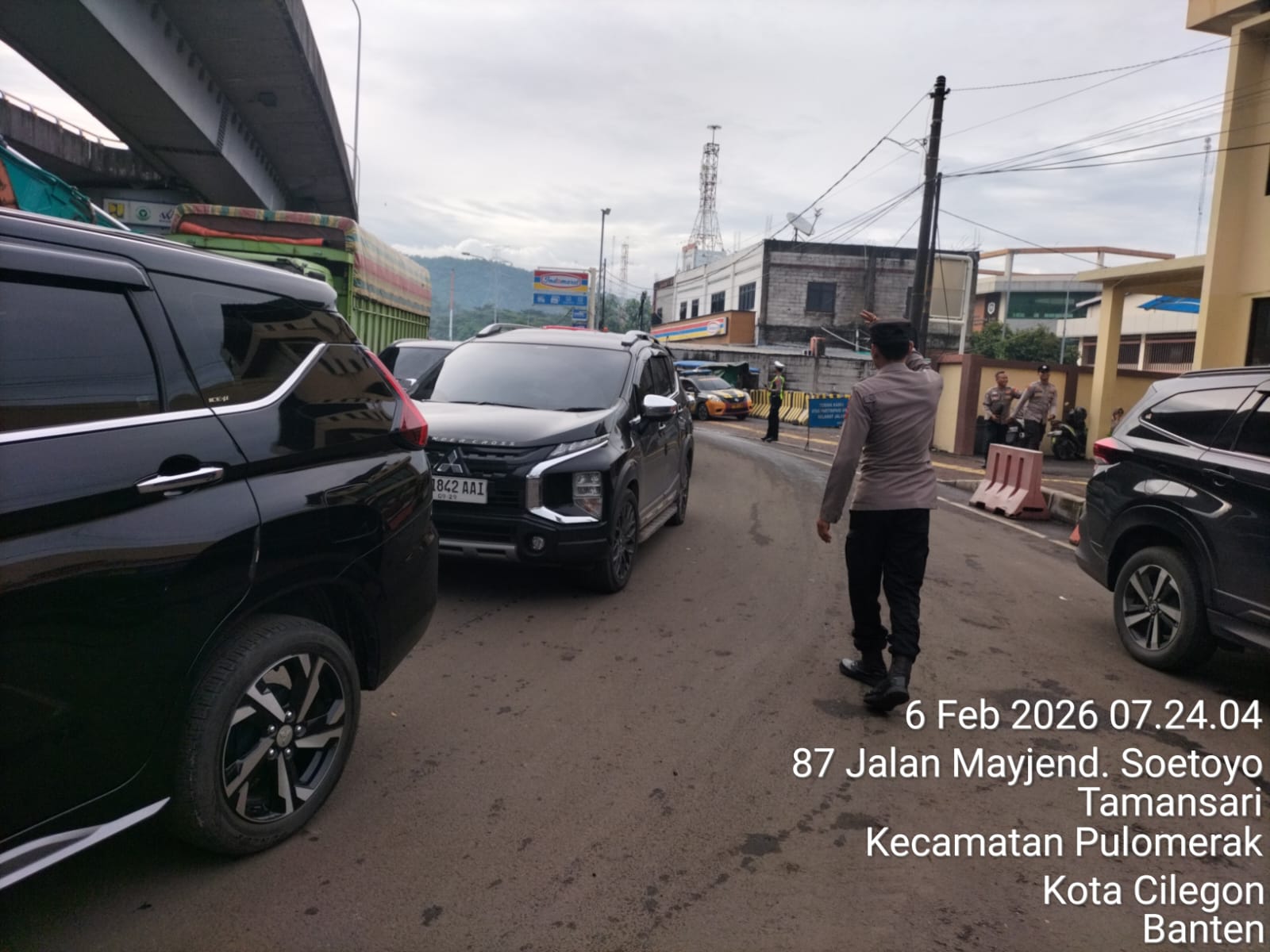 Cilegon - Dalam rangka peningkatan pelayanan prima kepada masyarakat, Kskp Merak Polres Cilegon Polda Banten melaksanakan pengaturan antrian R4 yang akan masuk ke Kapal Ferry di Pelabuhan Merak, Jumat (06/02/2026).