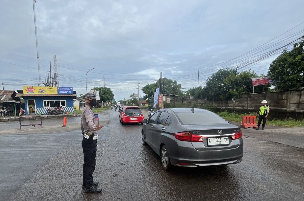 Polsek Ciwandan Laksanakan Pengaturan Arus Lalin Sore di Simpang Beringin Ciwandan.