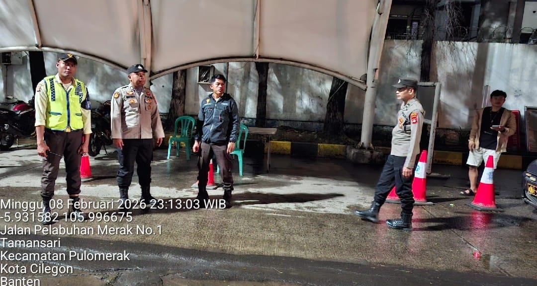 Cilegon - Personil Polsek Kskp Merak Polres Cilegon melaksanakan patroli di kawasan pelabuhan merak memberikan rasa aman dan damai, Senin (09/02/2026)