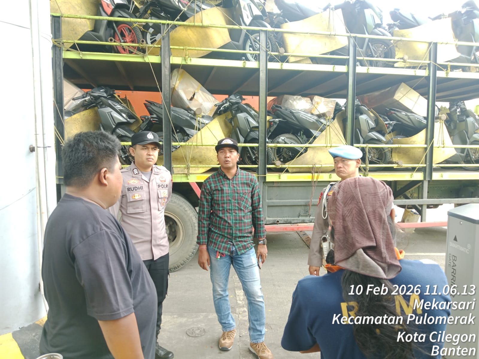 Cilegon - Personel Polsek Kskp Merak Polres Cilegon Polda Banten melaksanakan sambang dan patroli kawasan pelabuhan merak dalam rangka menjaga Harkamtibmas di Kawasan Pelabuhan Merak, Selasa (10/02/2026).