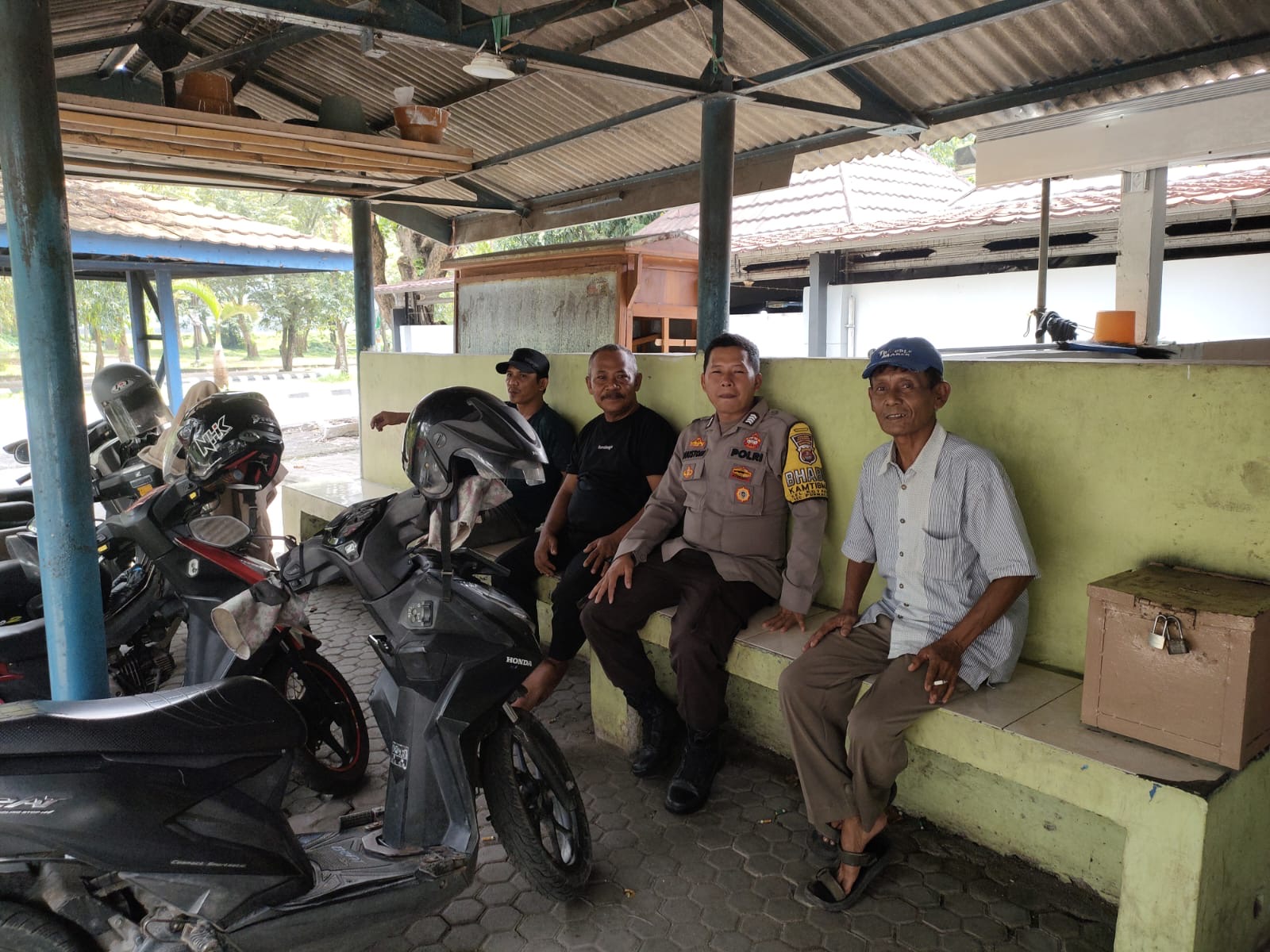 Bhabinkamtibmas Polsek Purwakarta, Bripka Agustoni, melaksanakan patroli dialogis dengan menyapa langsung warga pengemudi ojek yang berkumpul di pangkalan ojek kawasan Propelat, Kelurahan Kotabumi