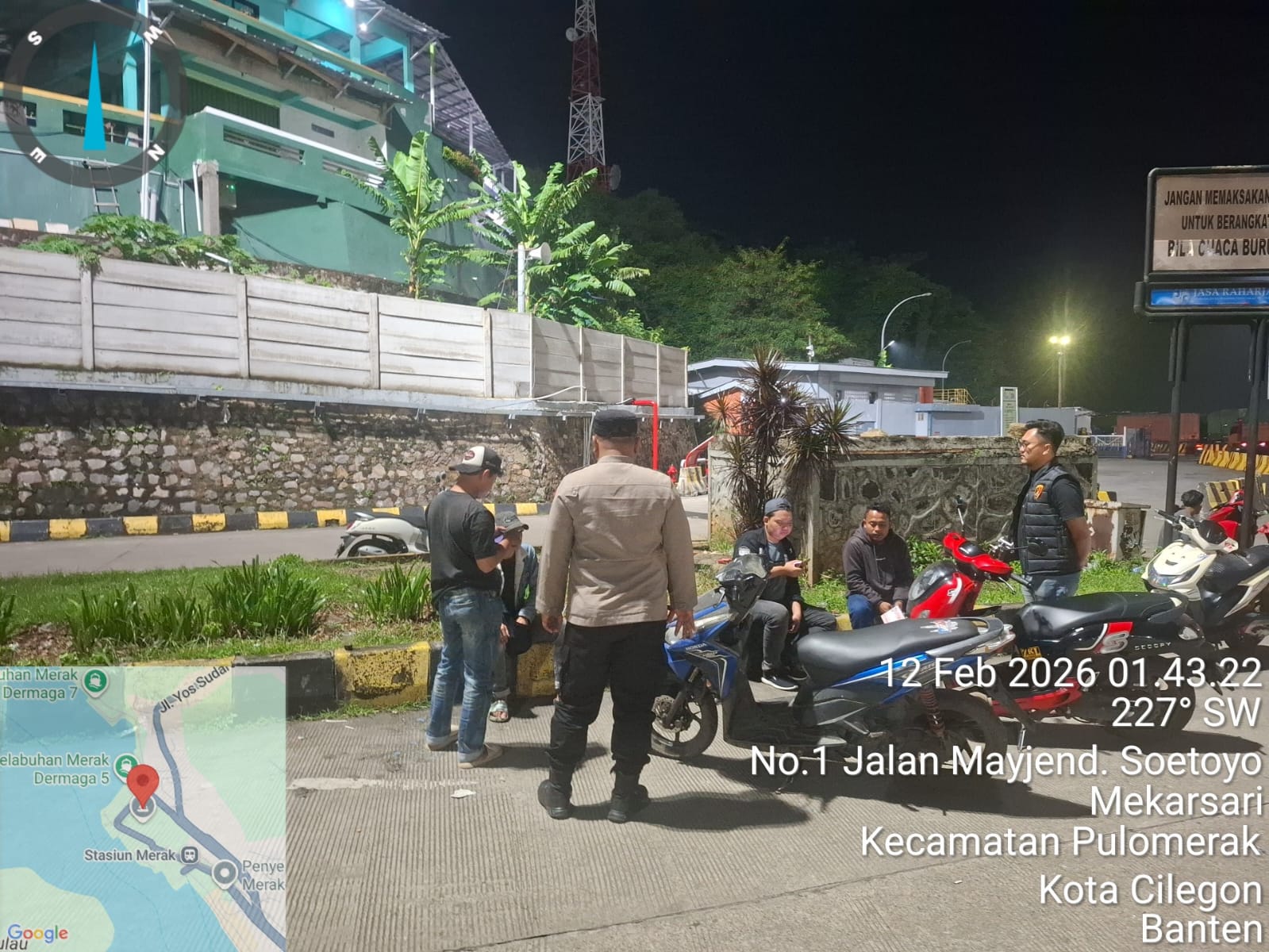 Cilegon - Personil Polsek Kskp Merak Polres Cilegon melaksanakan patroli di kawasan pelabuhan merak memberikan rasa aman dan damai, Kamis (12/02/2026)