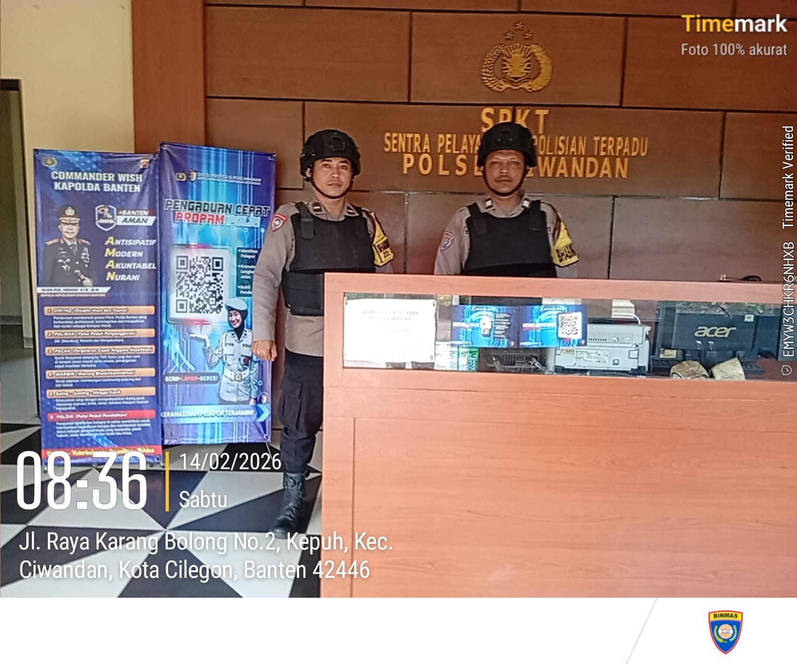 Cilegon – Polres Cilegon Polda Banten Guna mengantisipasi adanya potensi ancaman dan gangguan terhadap keamanan kantor maupun keselamatan personel piket jaga, Personel Polsek Ciwandan Polres Cilegon selalu tingkatkan kesiapsiagaan dan kewaspadaan dengan rutin menggelar kegiatan Sistem Pengamanan Mako (Sispam Mako), Sabtu (14/02/2026).