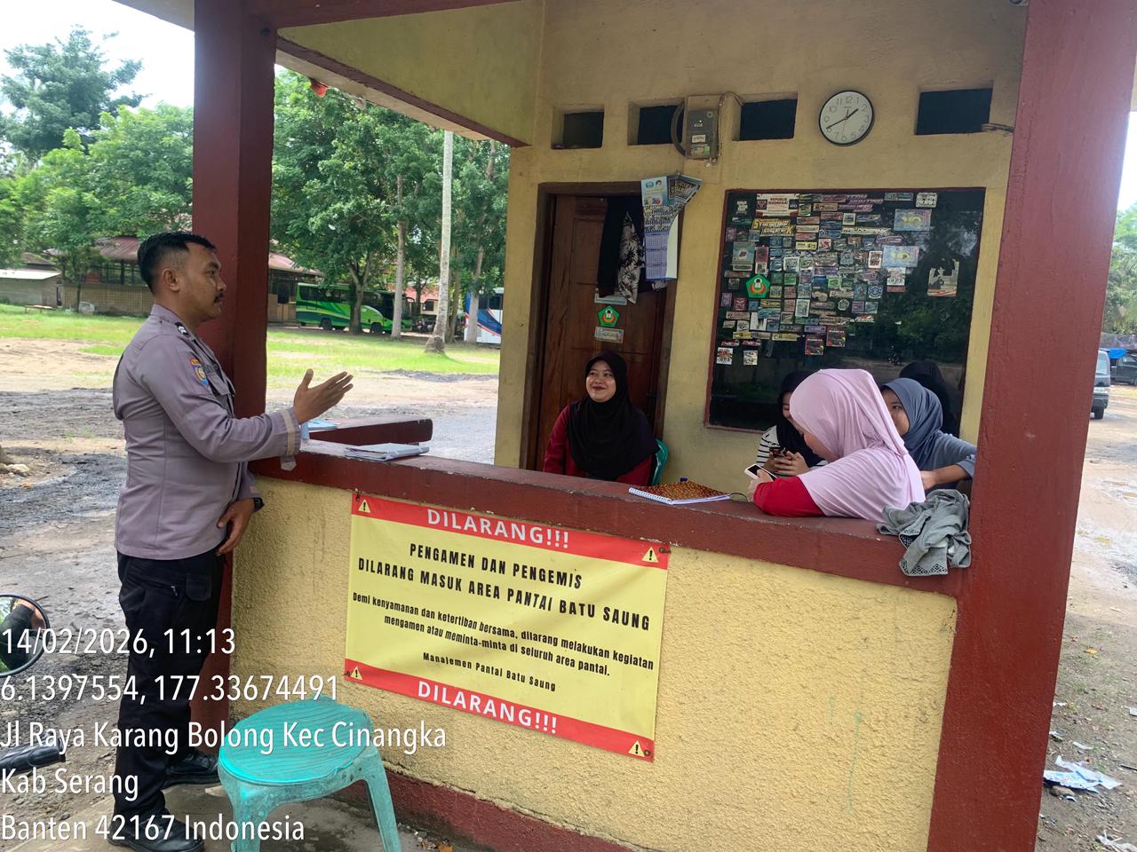 Cilegon – Polres Cilegon Polda Banten, Personel Polsek Cinangka Polres Cilegon melaksanakan sambang dan patroli kawasan wisata Pantai dan hotel dalam rangka menjaga Harkamtibmas di Kawasan Wisata Darkum Polsek Cinangka Polres Cilegon pada saat weekend, Sabtu (14/02/2026).