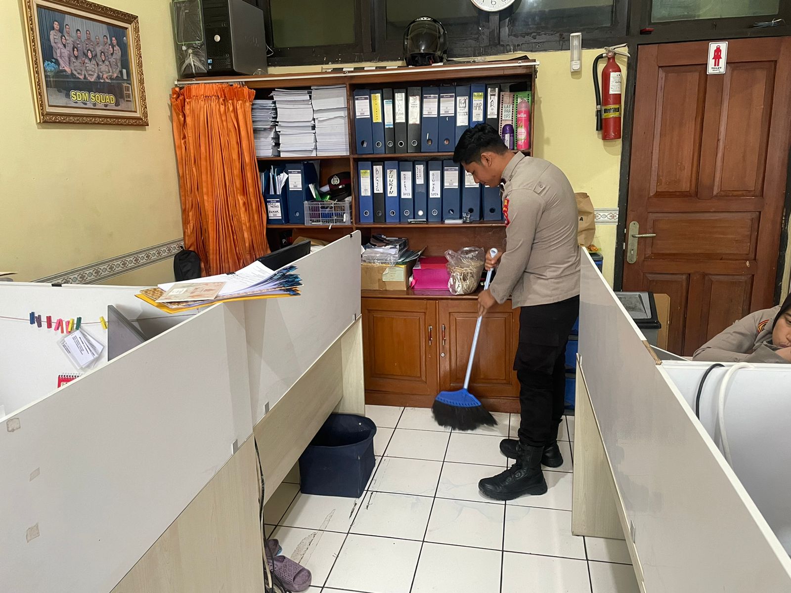 Anggota Bag SDM Polres Cilegon,selaluu melaksankan kegiatan membersihkan ruangan kerja secara rutin.