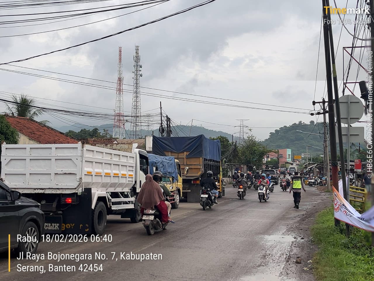 Cilegon – Polres Cilegon Polda Banten, Dalam Mewujudkan Aksi Nyata Pelayanan Kepada Masyarakat, Personil Polsek Bojonegara Polres Cilegon Polda Banten Laksanakan Strong Point Pengaturan Lalu lintas di depan Simpang Wadas / depan pelelangan  ikan  (TPI) Bojonegara, Rabu (18/02/2026).