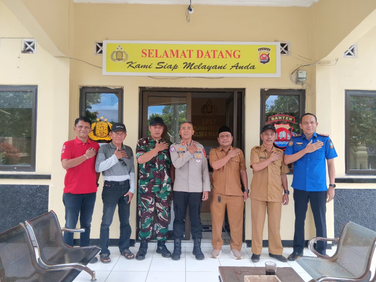 Kapolsek, Bhabinkamtibmas Polsek Mancak Polres Cilegon Melaksanakan sambang dan silaturahmi Bersama Danramil mancak dan kepala desa se-Kecamatan Mancak untuk Mewujudkan Wilayah yang Aman dan Kondusif.