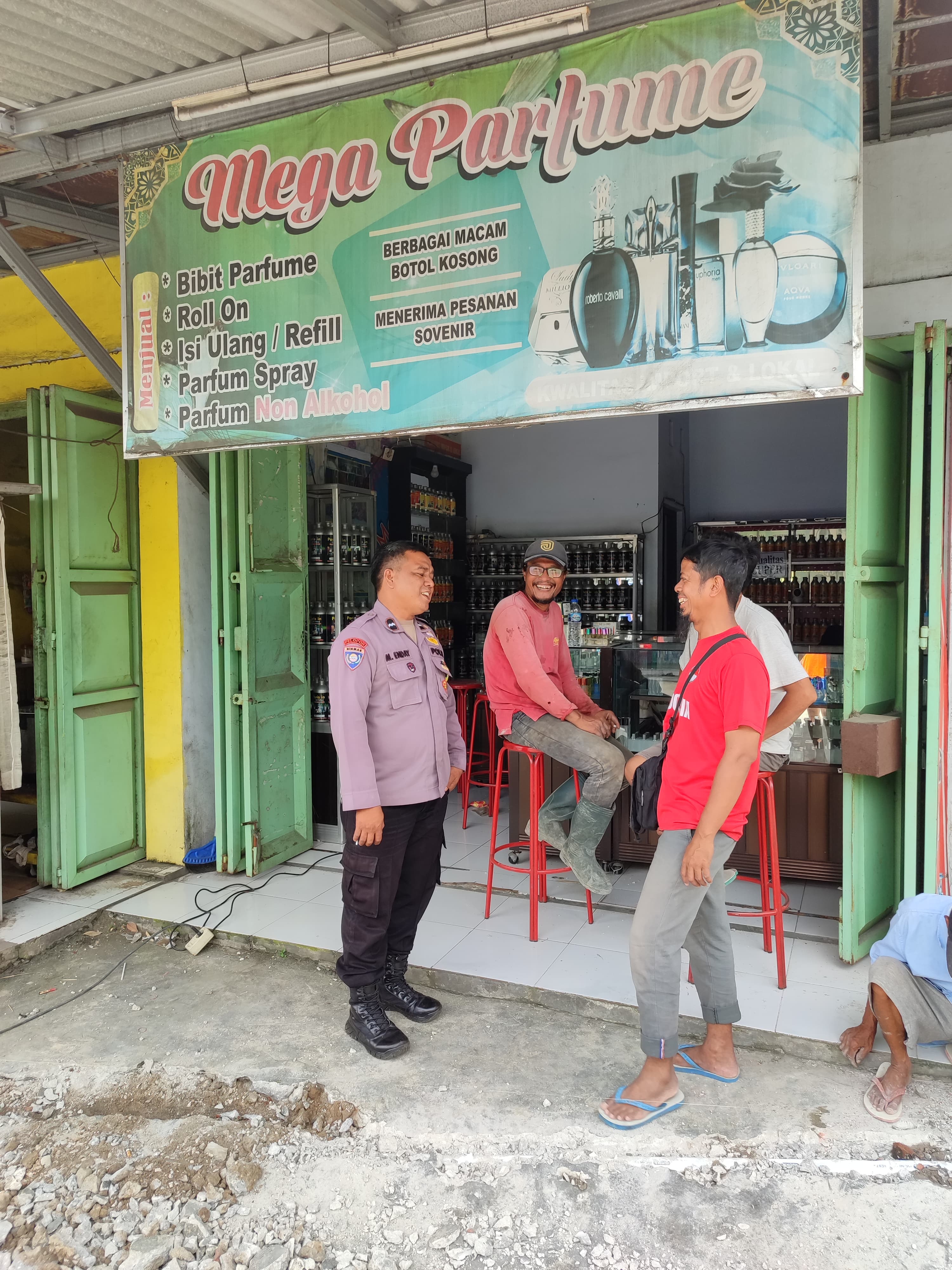 Bhabinkamtibmas menyambangi  warga  yang sedang duduk-duduk santai dan ngobrol , pada kesempatan yang baik tersebut Bhabinkamtibmas menyampaikan pesan-pesan kamtibmas dan Mengajak masyarakat untuk meningkatkan kewaspadaan serta untuk bersama-sama ikut serta menjaga keamanan lingkungan guna mencegah terjadinya gangguan kamtibmas.