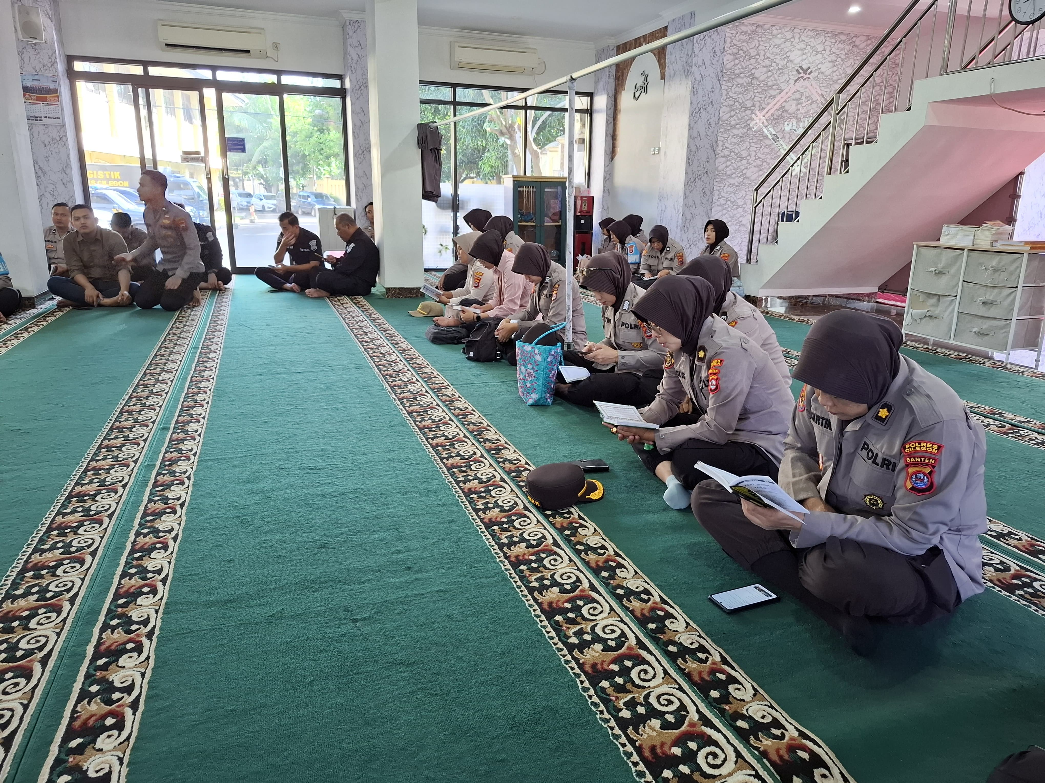 Kegiatan Pengajian Rutin di laksanakan setelah personel melaksanakkan apel pagi, kegiatan tersebut yang dilaksanakan oleh personil Pujuan untuk berdoa bersama untuk memohon kelancaran dan keamanan di setiap operasi kegiatan yang di laksanakan di wilayah hukum Polres Cilegon.