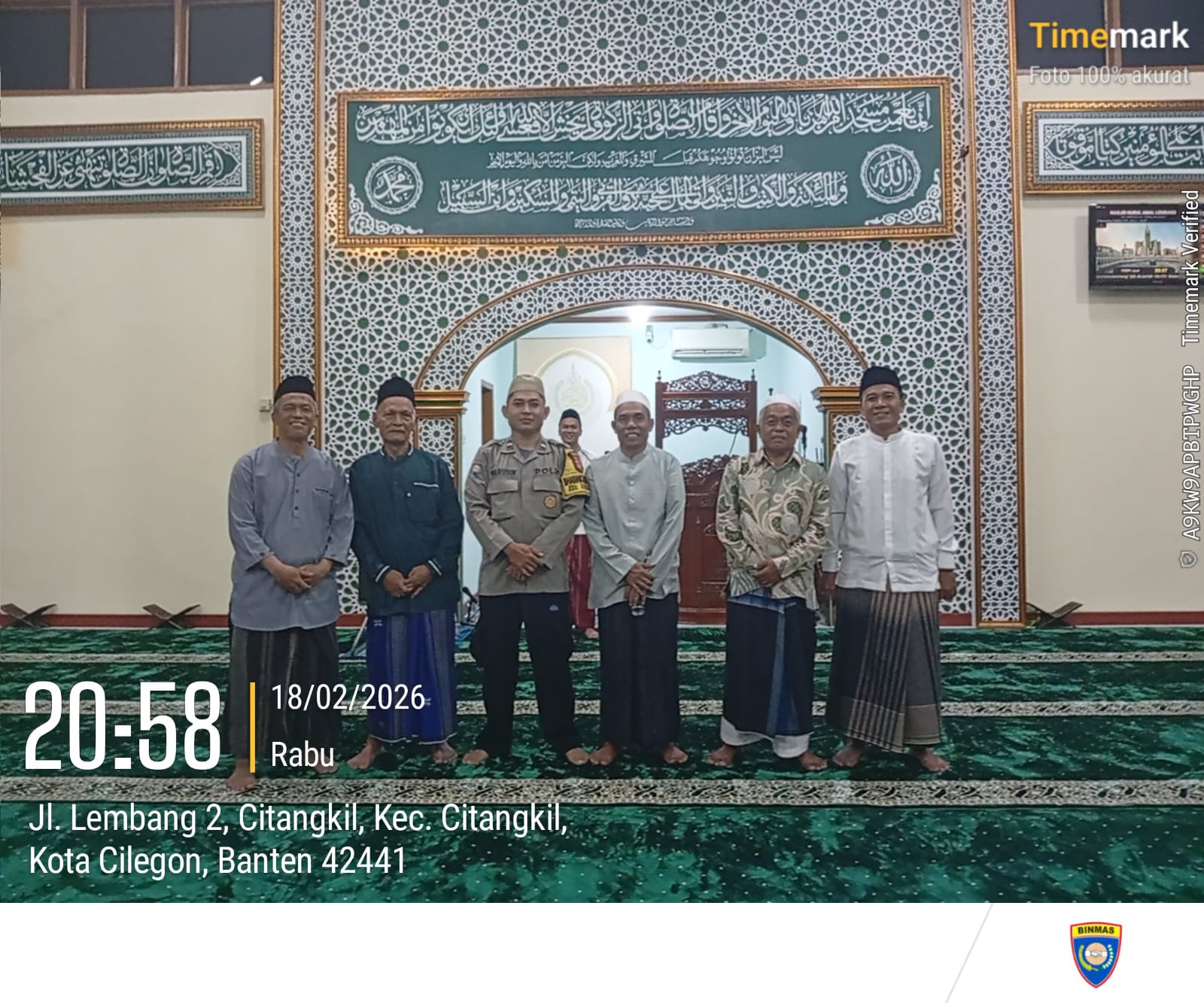 Cilegon - Bhabinkamtibmas polsek Ciwandan Polres Cilegon Polda Banten Silahturahmi Dan Tarawih Keliling Bersama warga Masyarakat lingkungan yang bertempat di masjid lingkungan binaannya, Kamis (19/02/2026).